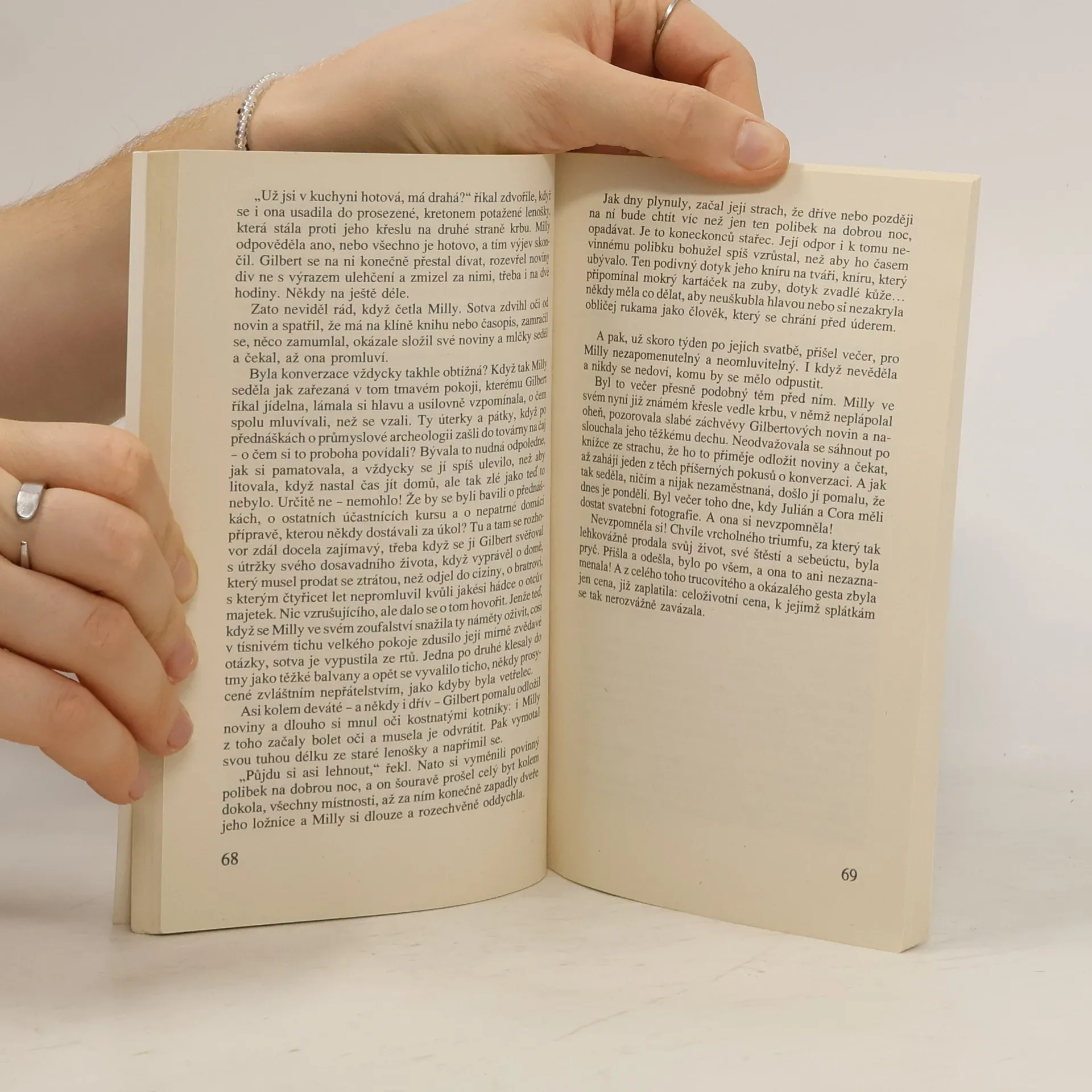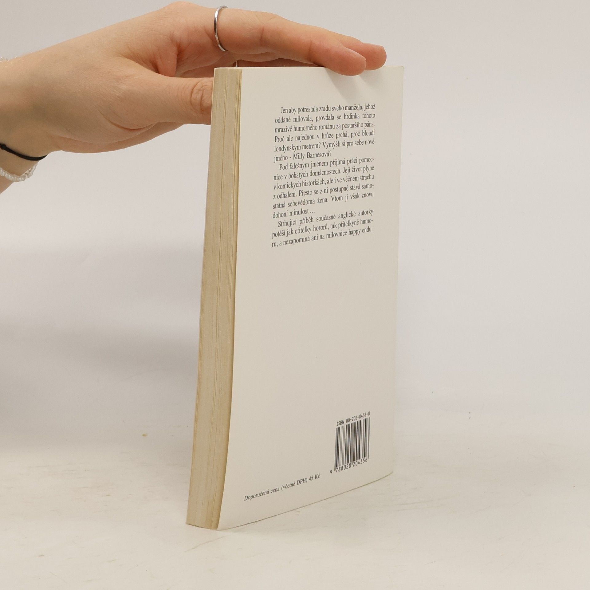 Jen aby potrestala zradu svého manžela, jehož oddaně milovala, provdala se hrdinka tohoto mrazivě humorného románu za postaršího pána. Proč ale najednou v hrůze prchá, proč bloudí londýnským metrem? Vymýšlí si pro sebe nové jméno - Milly Barnesová? Pod falešným jménem přijímá práci pomocnice v bohatých domácnostech.Její život plyne v komických historkách, ale i ve věčném strachu z odhalení. Přesto se z ní postupně stává sebevědomá žena. Vtom ji však znovu dohoní minulost... Strhující příběh anglické autorky potěší jak ctitelky hororů, tak přítelkyně humoru, a nezapomíná ani na milovnice happy endu.