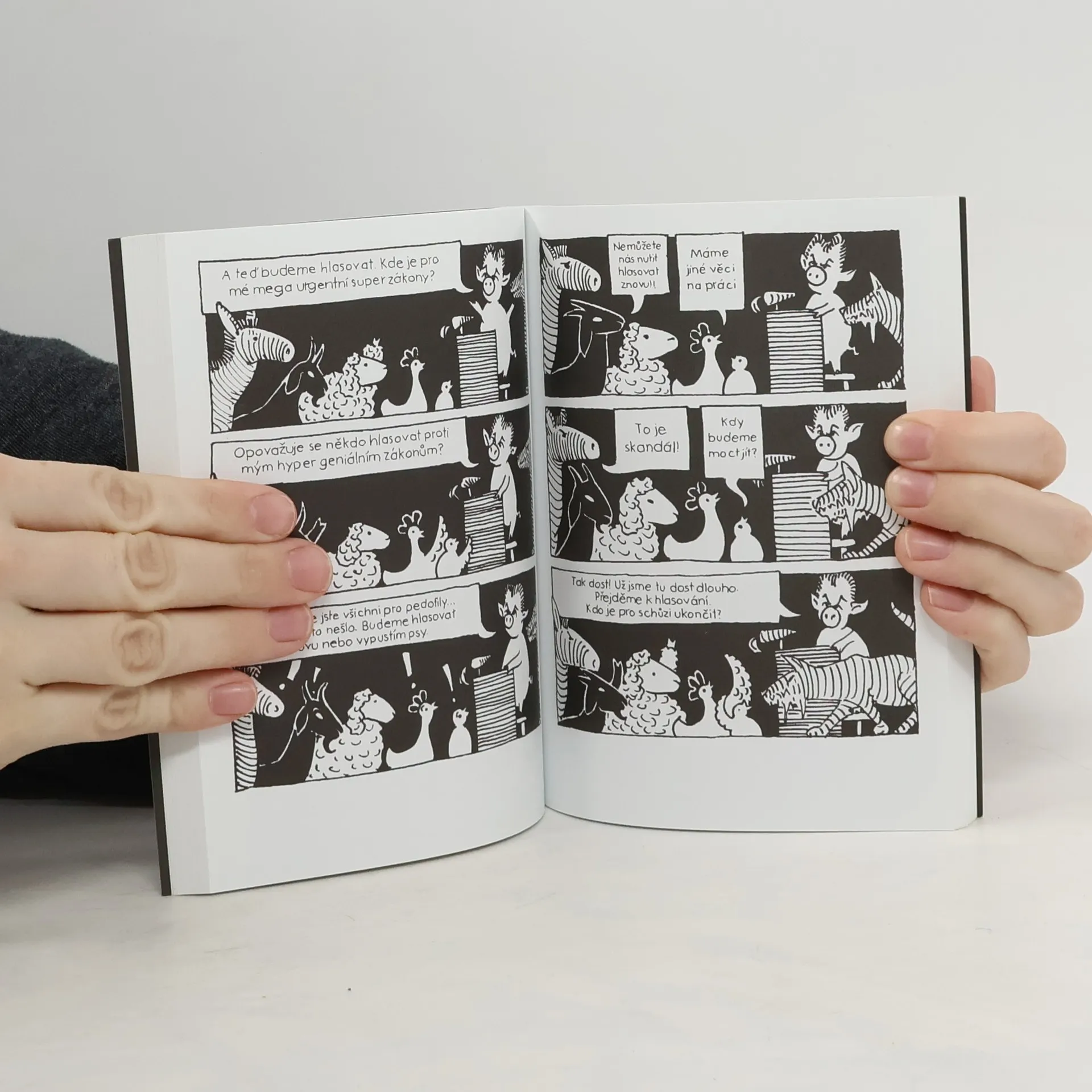 Kniha kreslených příběhů francouzské umělkyně Mad Meg s liberální, bezpečnostní a ekonomistickou tématikou určenou všem nebohým blbčanům co se vrátili od uren kde zas prodloužili své otroctví v touze po změně, a všem stranickým skřetům, kteří se nám chystají vládnout a šetřit (kniha je tištěna jen jednou ale dobrou barvou).