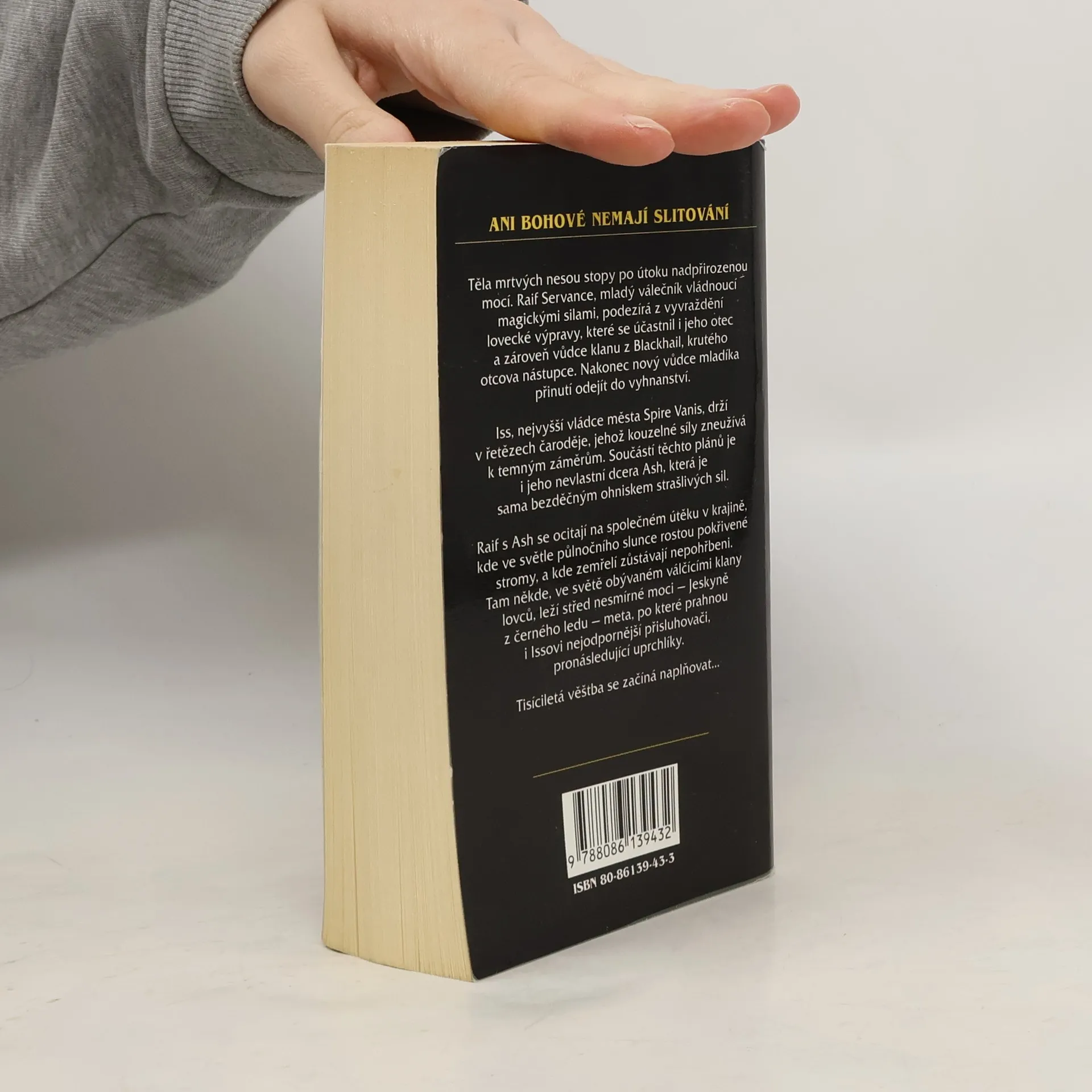 1. kniha ze série Meč stínů. Těla mrtvých nesou stopy po útoku nadpřirozenou mocí. Raif Servance, mladý válečník vládnoucí magickými silami, podezírá z vyvraždění lovecké výpravy, které se účastnil i jeho otec a zároveň vůdce klanu z Blackhail, krutého otcova nástupce. Nakonec nový vůdce mladíka přinutí odejít do vyhnanství. Iss, nejvyšší vládce města Spire Vanis, drží v řetězech čaroděje, jehož kouzelné síly zneužívá k temným záměrům. Součástí těchto plánů je i jeho nevlastní dcera Ash, která je sama bezděčným ohniskem strašlivých sil. Raif s Ash se ocitají na společném útěku v krajině, kde ve světle půlnočního slunce rostou pokřivené stromy, a kde zemřelí zůstávají nepohřbeni. Tam někde, ve světě obývaném válčícími klany lovců, leží střed nesmírné moci – Jeskyně z černého ledu – meta, po které prahnou i Issovi nejodpornější přisluhovači, pronásledující uprchlíky. Tisíciletá kletba se začíná naplňovat…