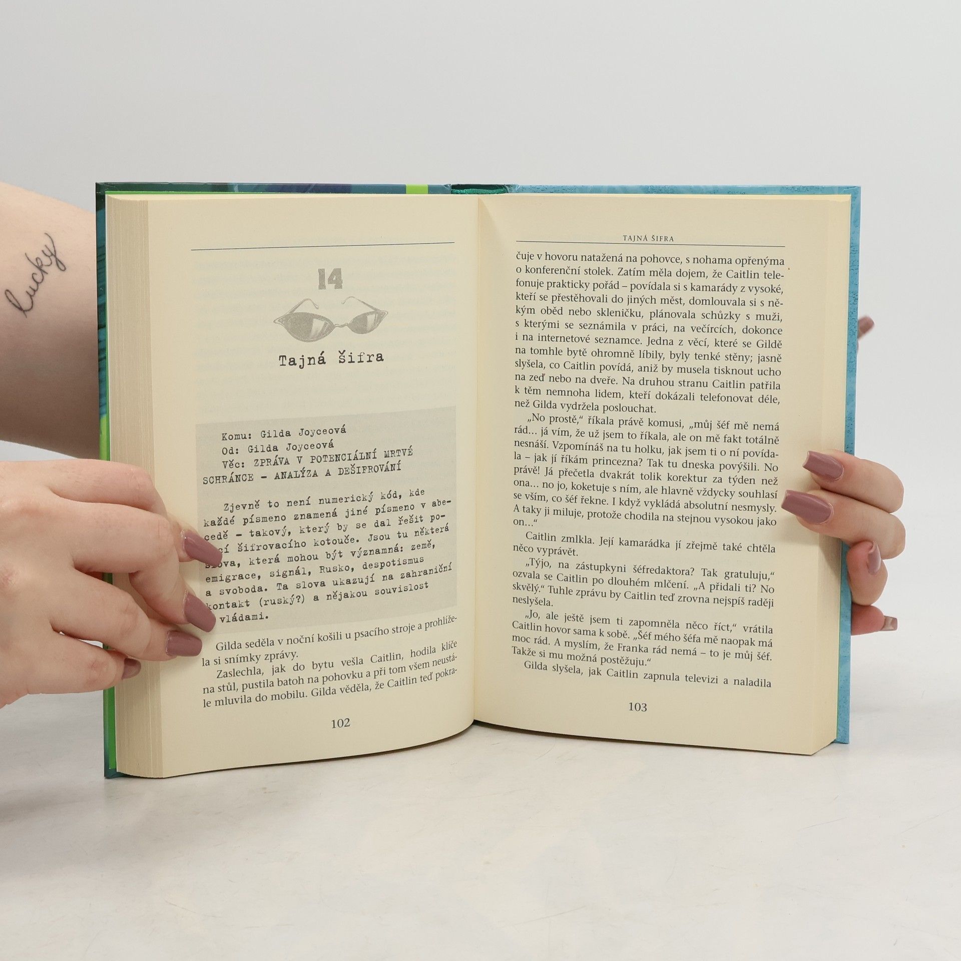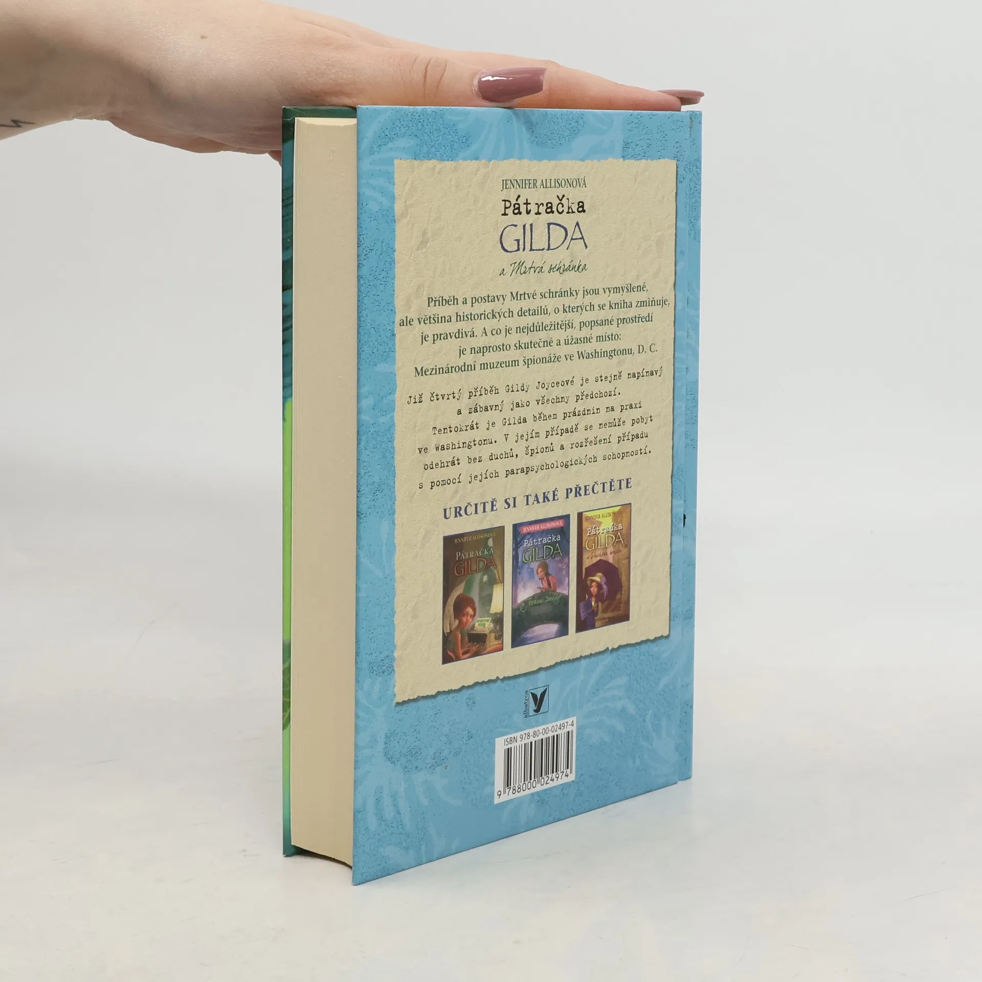 Příběh a postavy Mrtvé schránky jsou vymyšlené, ale většina historických detailů, o kterých se kniha zmiňuje, je pravdivá. A co je nejdůležitější, popsané prostředí je naprosto skutečné a úžasné místo: Mezinárodní muzeum špionáže ve Washingtonu, D. C. Naše stále výstřední, nyní skoro patnáctiletá školačka z Detroitu, která již prokázala své parapsychologické schopnosti a má v této oblasti nemalé úspěchy, tráví tentokrát prázdniny ve Washingtonu, většinou v Muzeu špionáže. Gilda je tu na praxi, ale v jejím případě se nemůže pobyt odehrát bez duchů, špionů a rozřešení zajímavého případu. Čtvrtý, zatím poslední příběh Gildy Joyceové je stejně napínavý a zábavný jako všechny předchozí, které sklidily ceny a mají stále větší počet čtenářek!