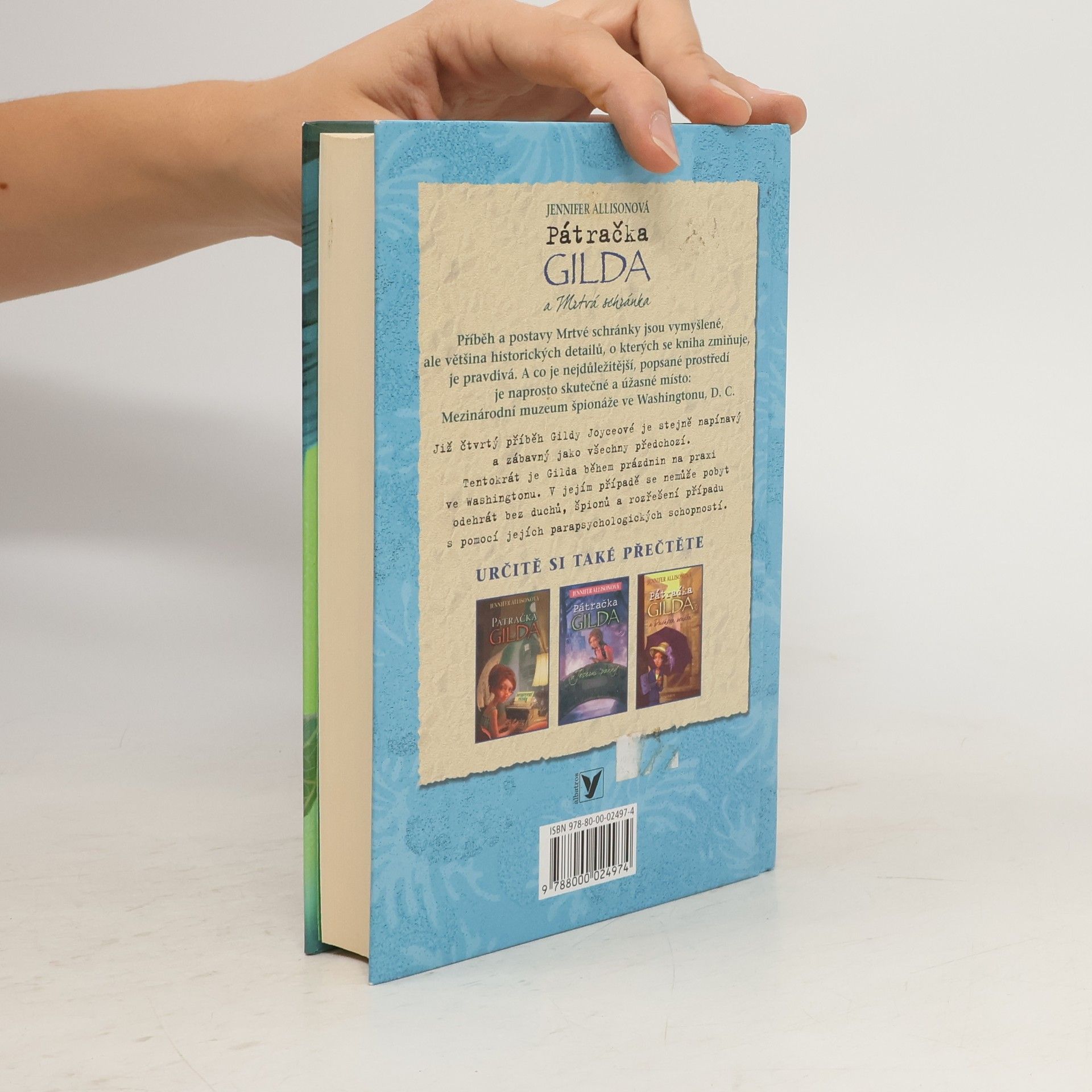 Příběh a postavy Mrtvé schránky jsou vymyšlené, ale většina historických detailů, o kterých se kniha zmiňuje, je pravdivá. A co je nejdůležitější, popsané prostředí je naprosto skutečné a úžasné místo: Mezinárodní muzeum špionáže ve Washingtonu, D. C. Naše stále výstřední, nyní skoro patnáctiletá školačka z Detroitu, která již prokázala své parapsychologické schopnosti a má v této oblasti nemalé úspěchy, tráví tentokrát prázdniny ve Washingtonu, většinou v Muzeu špionáže. Gilda je tu na praxi, ale v jejím případě se nemůže pobyt odehrát bez duchů, špionů a rozřešení zajímavého případu. Čtvrtý, zatím poslední příběh Gildy Joyceové je stejně napínavý a zábavný jako všechny předchozí, které sklidily ceny a mají stále větší počet čtenářek!