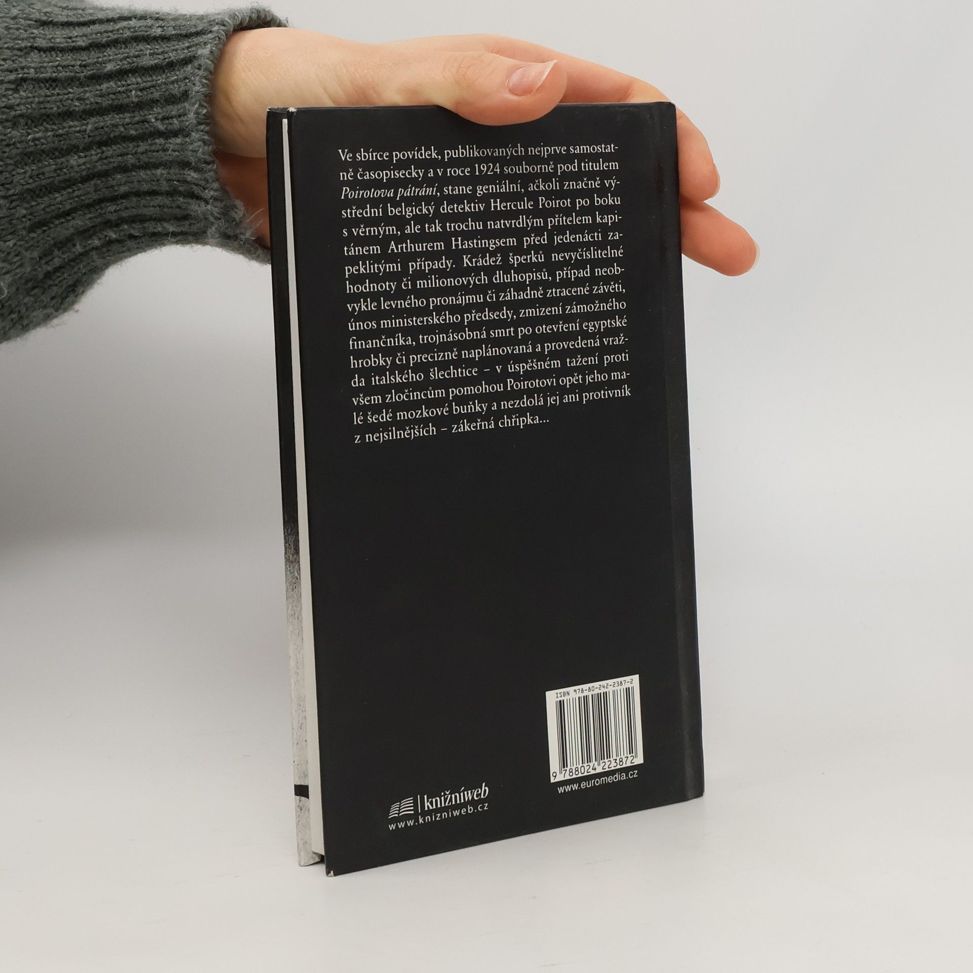 Do sbírky povídek pod titulem Poirotova pátrání zahrnula Agatha Christie jedenáct příběhů, v nichž belgický detektiv Hercule Poirot – za pomoci svých nezdolných šedých mozkových buněk a s věrným přítelem kapitánem Hastingsem po boku – úspěšně a s grácií sobě vlastní řeší mimo jiné krádeže šperků či milionových dluhopisů, případ ztracené závěti či levného bytu, únos ministerského předsedy nebo dobrodružství s egyptskou hrobkou. 2. vydání.