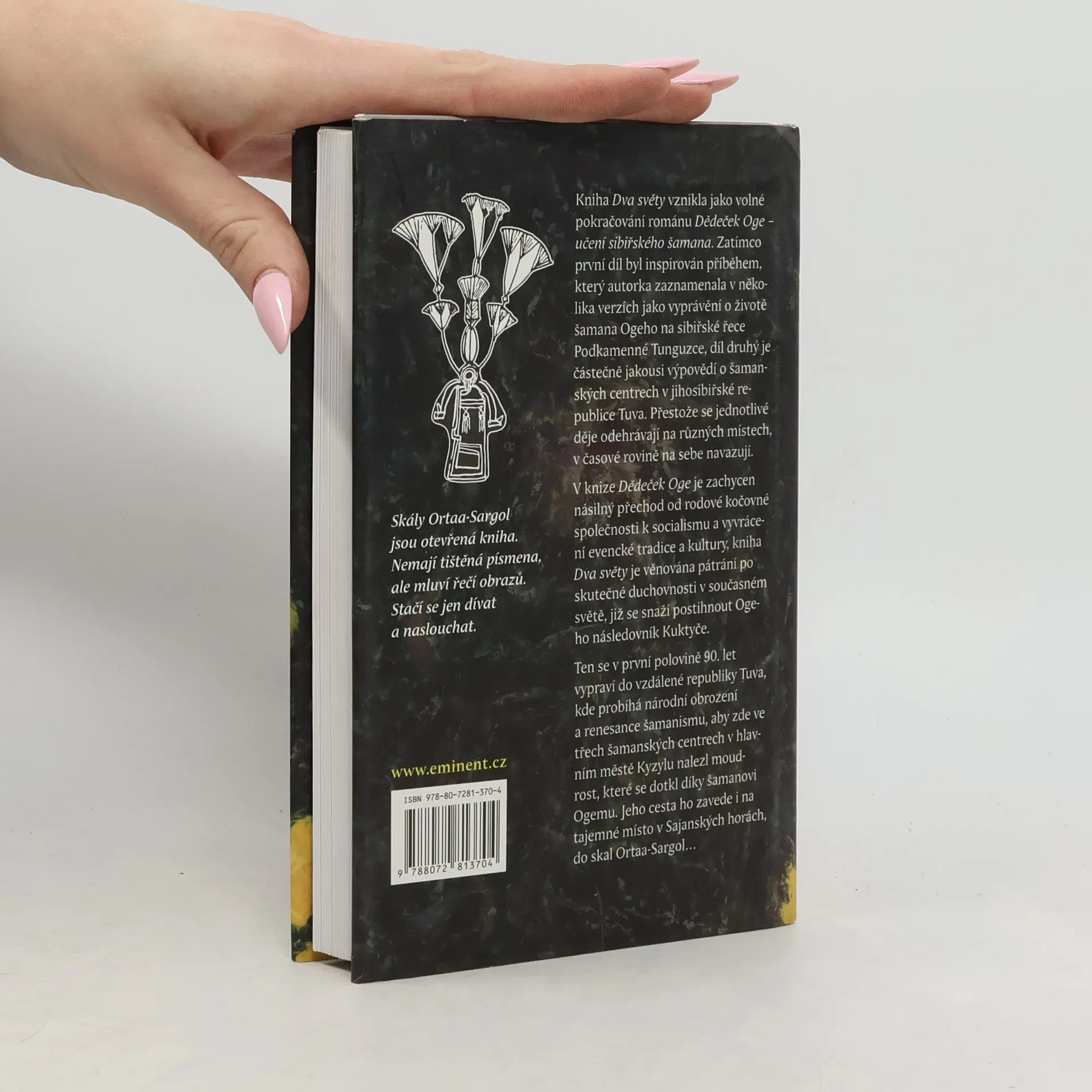 Kniha Dva světy vznikla jako volné pokračování románu Dědeček Oge – učení sibiřského šamana. Zatímco první díl byl inspirován příběhem, který autorka zaznamenala v několika verzích jako vyprávění o životě šamana Ogeho na sibiřské řece Podkamenné Tunguzce, díl druhý je částečně jakousi výpovědí o šamanských centrech v jihosibiřské republice Tuva. Přestože se jednotlivé děje odehrávají na různých místech, v časové rovině na sebe navazují. V knize Dědeček Oge je zachycen násilný přechod od rodové kočovné společnosti k socialismu a vyvrácení evencké tradice a kultury, kniha Dva světy je věnována pátrání po skutečné duchovnosti v současném světě, již se snaží postihnout Ogeho následovník Kuktyče. Ten se v první polovině 90. Let vypraví do vzdálené republiky Tuva, kde probíhá národní obrození a renesance šamanismu, aby zde ve třech šamanských centrech v hlavním městě Kyzylu nalezl moudrost, které se dotkl díky šamanovi Ogemu. Jeho cesta ho zavede i na tajemné místo v Sajanských horách, do skal Ortaa-Sargol…