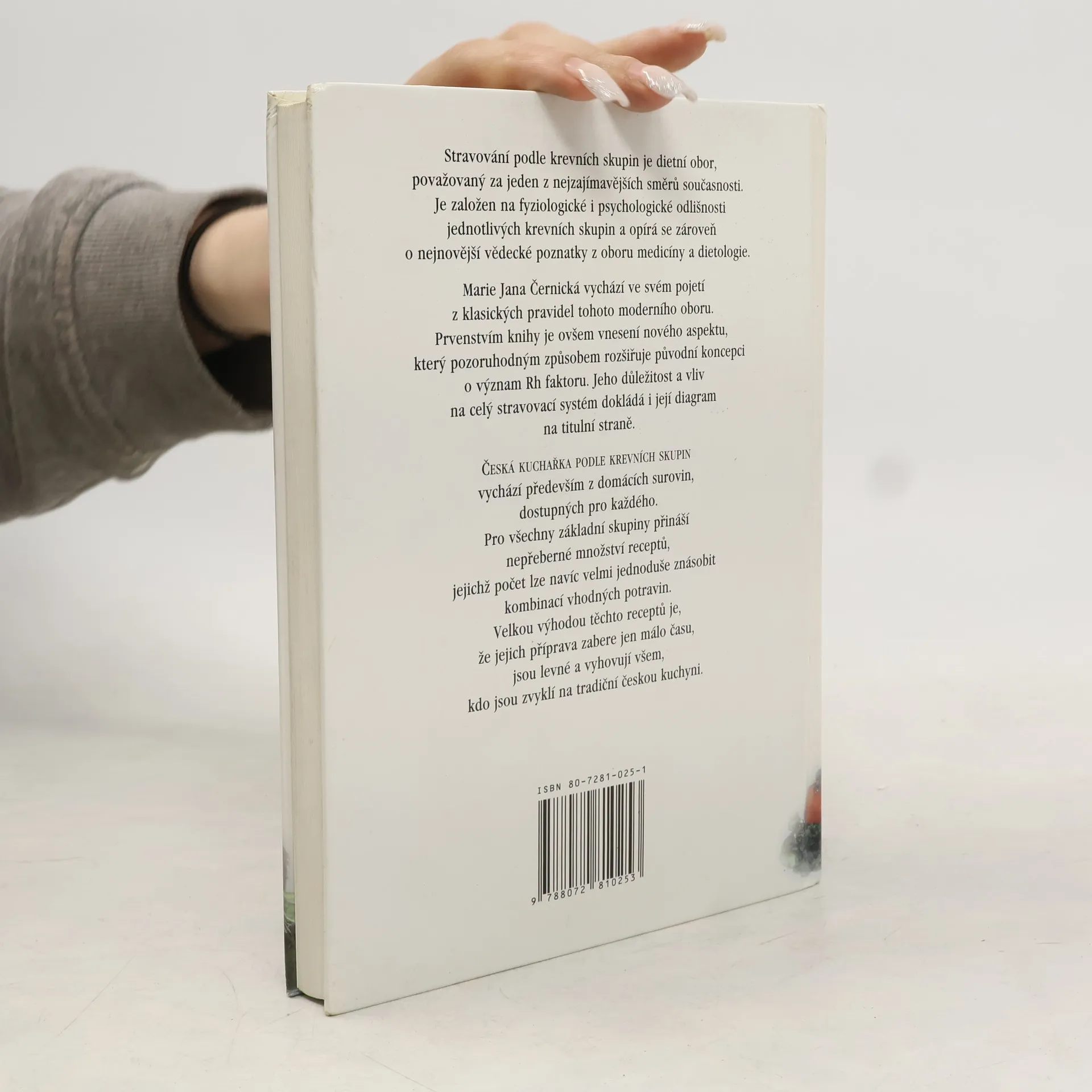 Stravování podle krevních skupin je dietní obor, považovaný za jeden z nejzajímavějších směrů současnosti. Je založen na fyziologické i psychologické odlišnosti jednotlivých krevních skupin a opírá se zároveň o nejnovější vědecké poznatky z oboru medicíny a dietologie. Česká kuchařka podle krevních skupin vychází především z domácích surovin, dostupných pro každého. Pro všechny základní skupiny přináší nepřeberné množství receptů, jejichž počet lze navíc velmi jednoduše znásobit kombinací vhodných potravin. Velkou výhodou těchto receptů je, že jejich příprava zabere jen málo času, jsou levné a vyhovují všem, kdo jsou zvyklí na tradiční českou kuchyni. Velmi úspěšná kniha Marie Černické využívá nejnovějších poznatků o zdraví a krevních skupinách a aplikuje je na české poměry. Prvenstvím knihy je rozlišení významu Rh faktoru. Publikace obsahuje velké množství receptů, vhodných pro všechny krevní skupiny a typy.