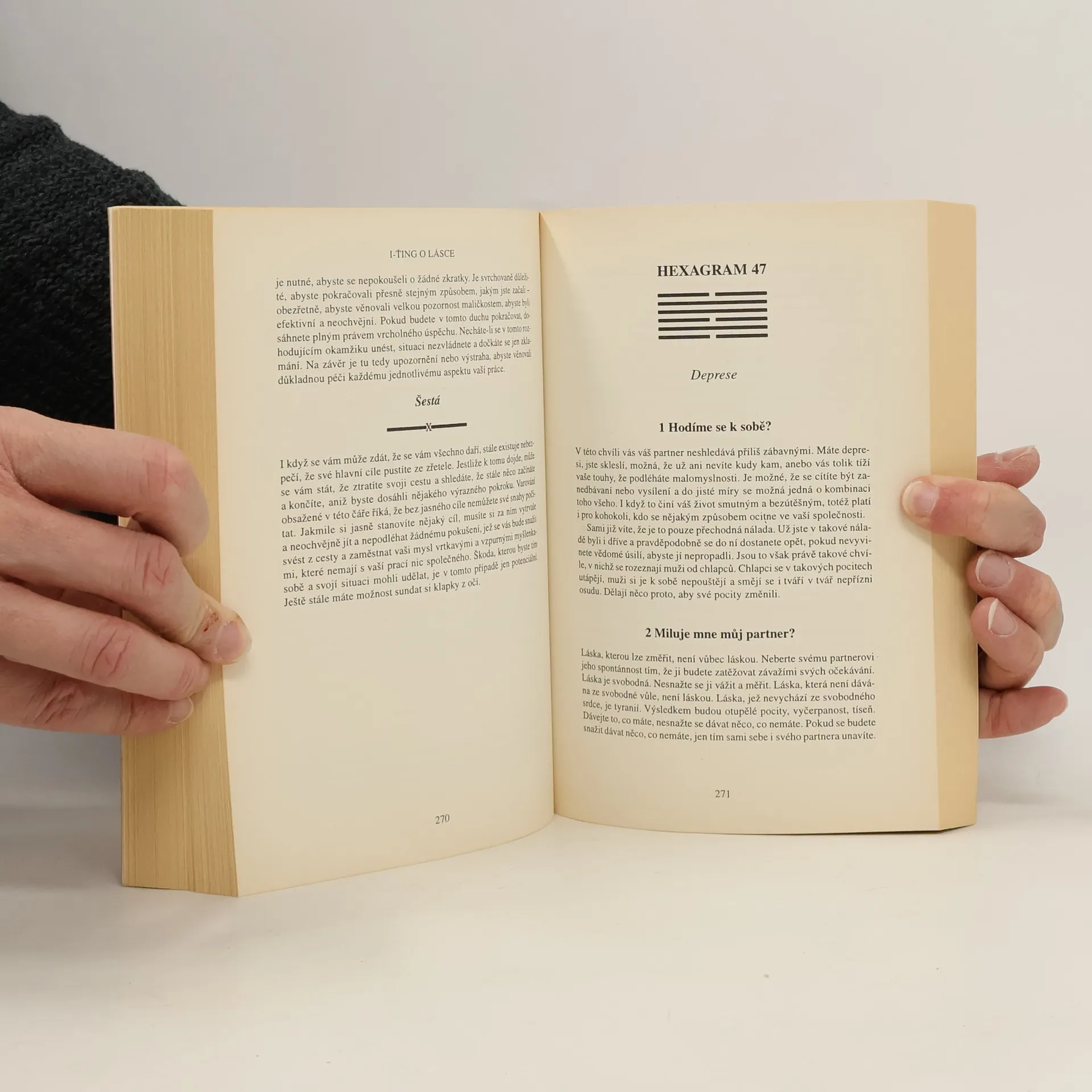 ťing je divinační technika původem ze starověké Číny, založená na principu synchronismu, který vědecky objasnil významný švýcarský psycholog Carl Gustav Jung, který I-ťing rovněž konzultoval a studoval. Jejím úkolem není prozrazovat budoucnost, ačkoli tak často činí, nýbrž poskytovat poradenství. Vzhledem k tomu, že má nadčasovou platnost a zahrnuje v sobě veškerou lidskou zkušenost, je relevantní pro každého člověka žijícího v kterékoli době, kdekoli na Zemi. Autor si pro tuto knihu vybral z celého učení I-ťingu jednu oblast – oblast partnerských vztahů, kterou se zabývá dopodrobna. Jeho hluboká a citlivá interpretace přibližuje poselství této dávné moudrosti ve formě snadno srozumitelné pro moderního Západního člověka a může tak být vynikajícím pomocníkem při řešení jakýchkoli otázek i problémů, s nimiž se můžeme setkat v přátelských, milostných i jiných vztazích a v manželství.