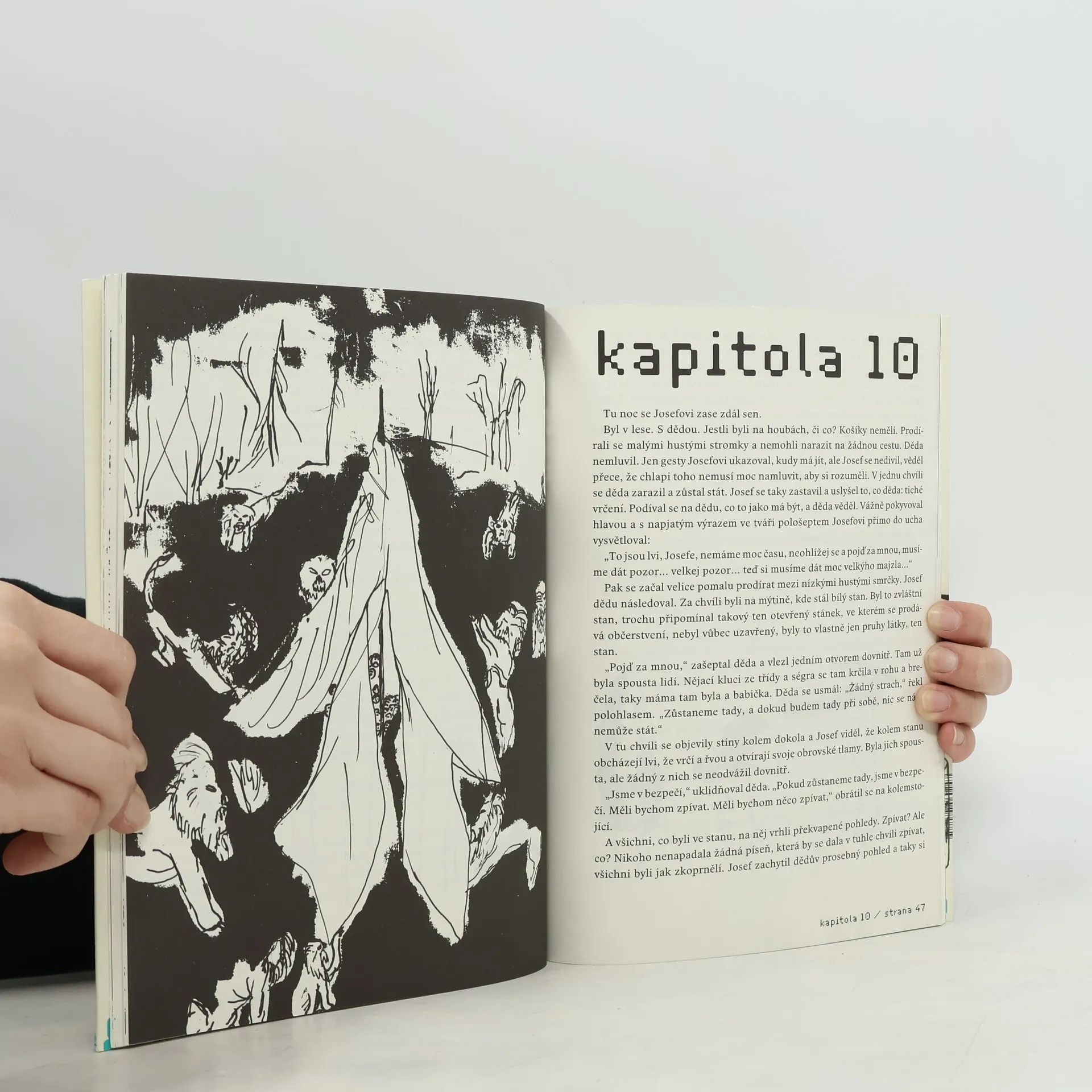 Josef je docela obyčejný kluk, žije v obyčejném panelákovém bytě a každý den jezdí obyčejným metrem do obyčejné školy. Tak by asi měl začínat popis příběhu o Josefovi, jenomže existuje vůbec obyčejný život? Každá obyčejná věc se může kdykoli zvrtnout: stačí, když je člověk všímavý, a to Josef je. Na jeho pravidelné trase byt-metro-škola se totiž začínají dít dost divné věci a Josef se pomalu, ale jistě zaplétá do tajemného dobrodružství, jehož hrdiny jsou také jeho dědeček, kterého srazilo auto, zatoulaný pes a dělníci ze stavby. A to se ještě zdá, že k tomu všemu má co říct jedna nová počítačová hra... Jako vždy v knížkách Marky Míkové se tu stírá šedivý nátěr všednosti, pod kterým září úžasná, nekonečná plocha dětské fantazie. A tak Josef skrze svou iniciační cestu krčským lesem může zachránit svého dědečka a najít opravdového přítele. Kromě této polohy autorka s humorem sobě vlastním vykresluje i Josefovo školní a domácí prostředí, bystrým okem pozoruje lidské typy a skládá pestrou mozaiku knížky, která je průlomem v současné tvorbě pro větší děti.