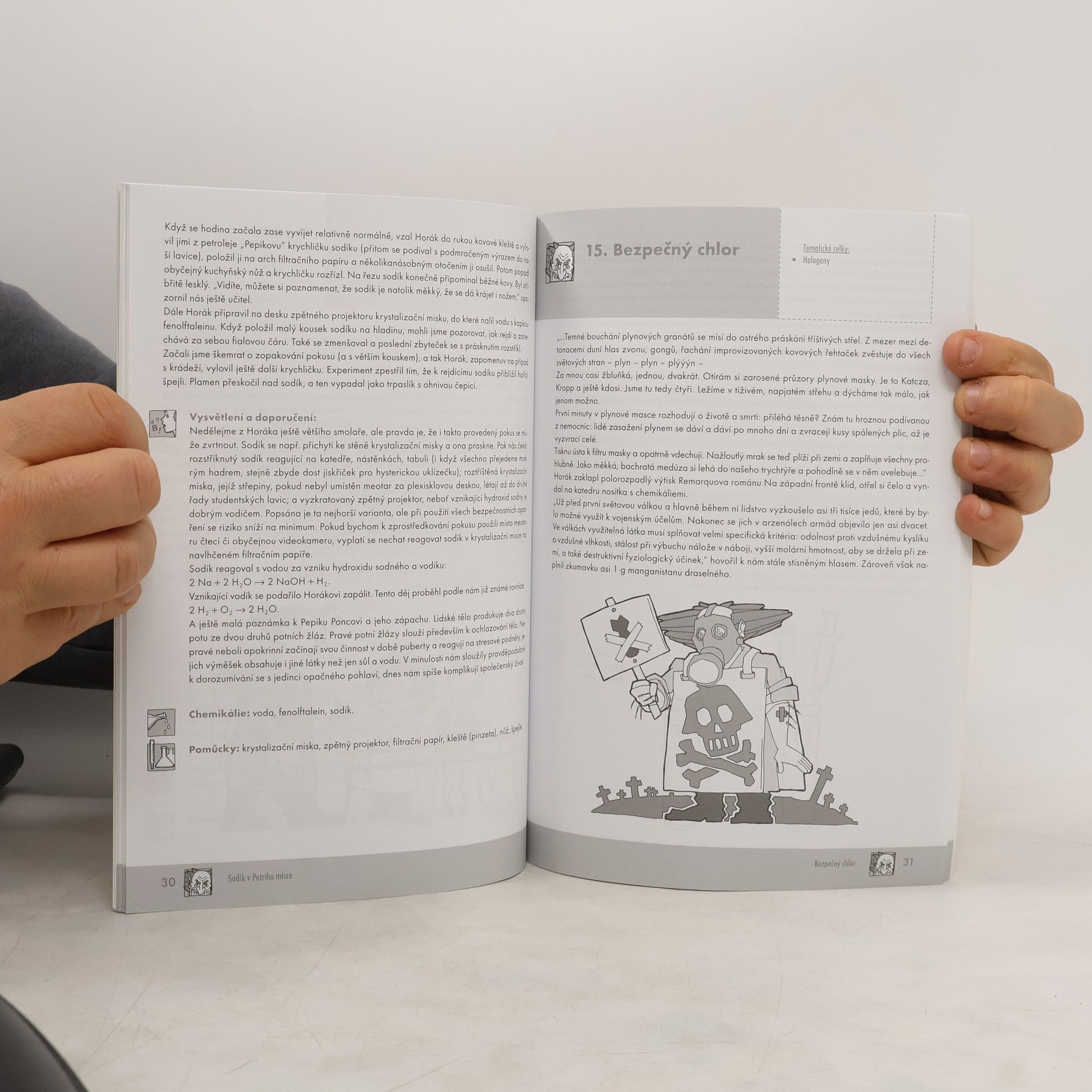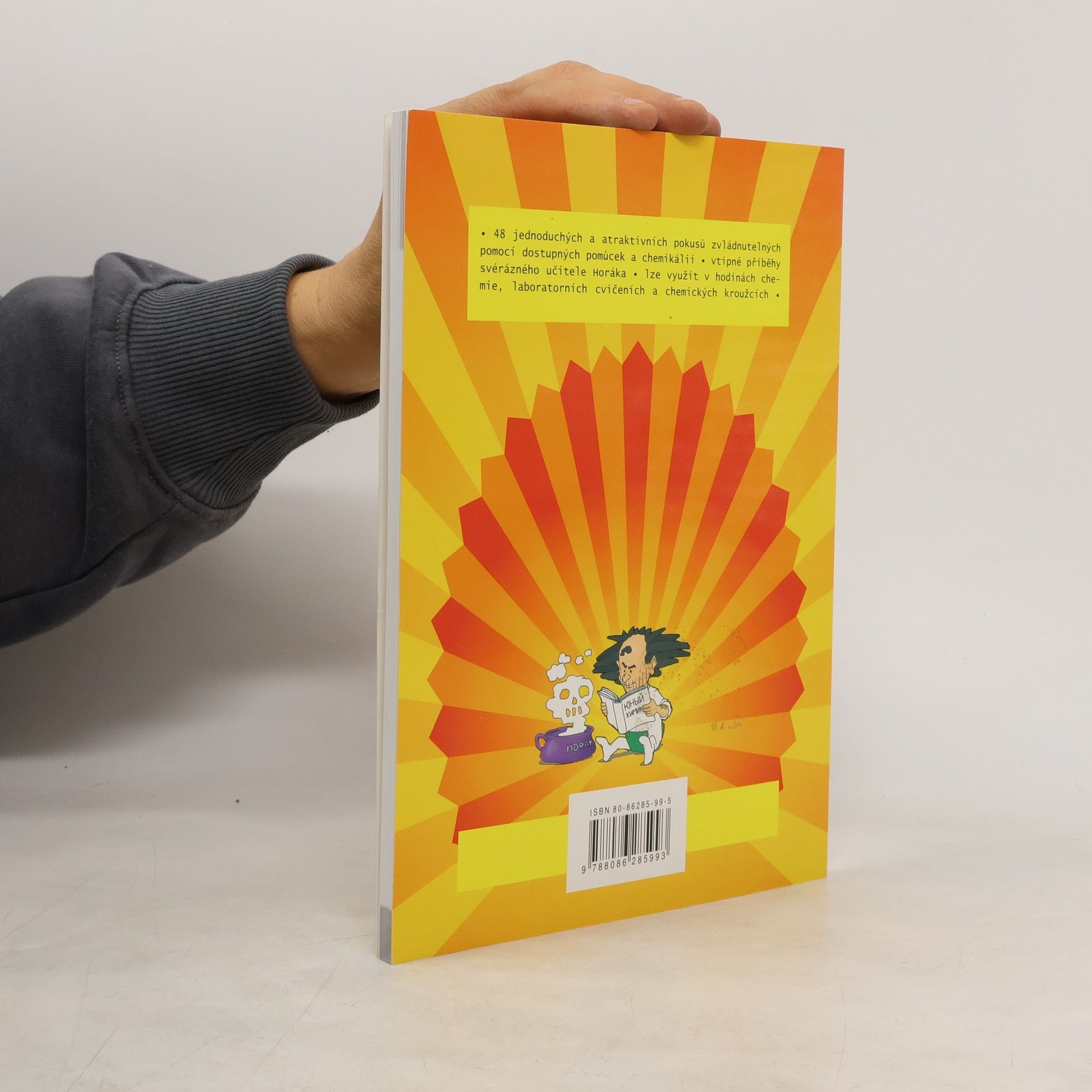 Kniha přináší 48 jednoduchých a atraktivních pokusů zvládnutelných pomocí dostupných pomůcek a chemikálií. Vtipné příběhy učitele Horáka lze využít v hodinách chemie, laboratorních cvičení a chemických kroužcích.