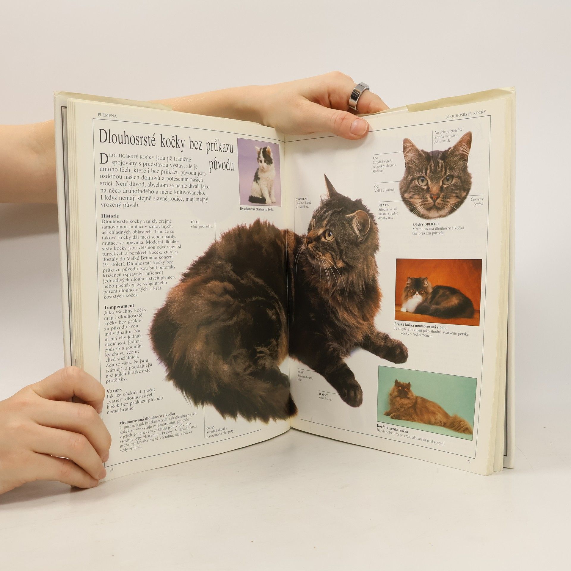Ojedinělá výpravná encyklopedie obsahuje stovky barevných, překrásně provedených fotografií, které přibližují charakteristické znaky jednotlivých plemen. Každé heslo uvádí podrobný popis základních rysů, historii, temperament, variety a řadu dalších zajímavostí. Nechybí přehledné údaje o původu a zdomácnění kočky, o jejím chování, inteligenci či způsobech dorozumívání ani praktické informace o zdraví, péči, vývoji koťat a výživě.