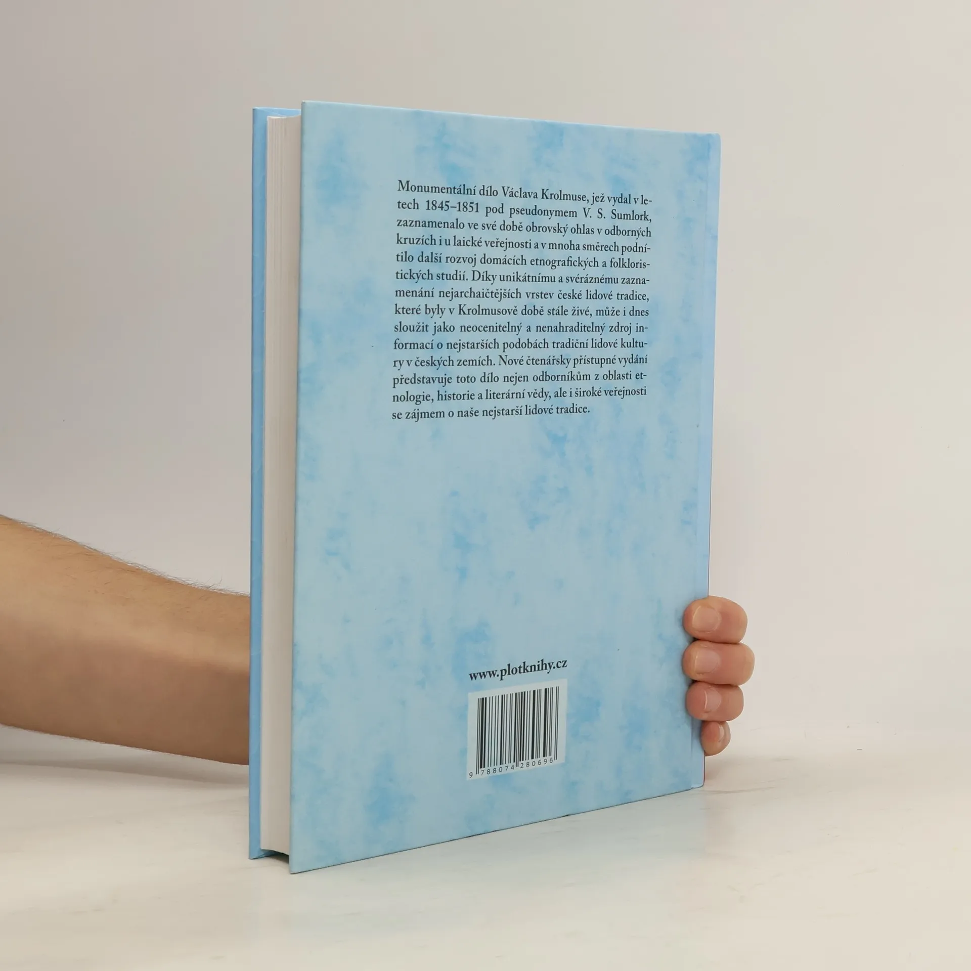 Monumentální dílo Václava Krolmuse, jež vydal v letech 1845--1851 pod pseudonymem V. S. Sumlork, zaznamenalo ve své době obrovský ohlas v odborných kruzích i u laické veřejnosti a v mnoha směrech podnítilo další rozvoj domácích etnografických a folkloristických studií. Díky unikátnímu a svéráznému zaznamenání nejarchaičtějších vrstev české lidové tradice, které byly v Krolmusově době stále živé, může i dnes sloužit jako neocenitelný a nenahraditelný zdroj informací o nejstarších podobách tradiční lidové kultury v českých zemích. Nové čtenářsky přístupné vydání představuje toto dílo nejen odborníkům z oblasti etnologie, historie a literární vědy, ale i široké veřejnosti se zájmem o naše nejstarší lidové tradice.
