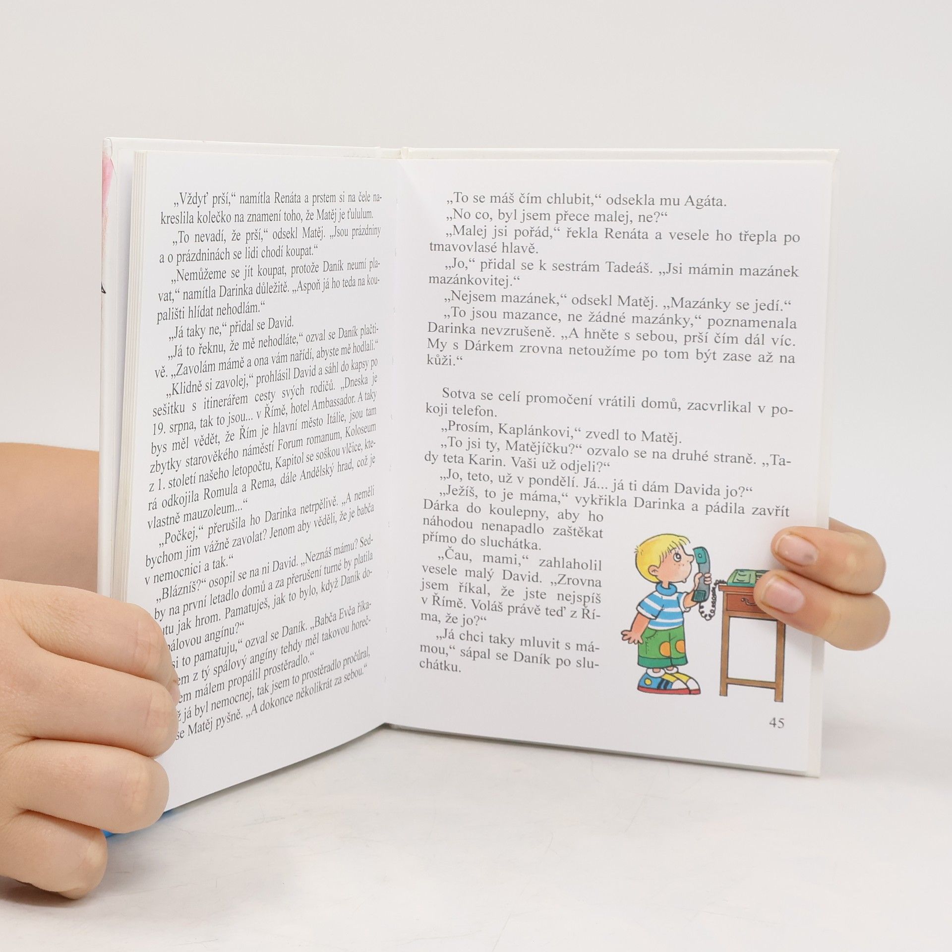Prázdninový příběh sedmi dětí ve věku třináct až pět let, bratranců a sestřenic Kaplánkových. Pro mladší děti. Jsou prázdniny, rodiče Davida, Darinky a Daníka jsou na evropském turné, rodiče trojčat Tadeáše, Renáty a Agáty a mladšího Matěje, tráví dovolenou u moře. O děti se má starat babča Evča, jenže ta se přejedla bramborových chipsů a sanitka ji musela s bolavým žlučníkem odvézt do nemocnice. Děti zůstaly samy, prozatím, než přijede z venkova babuška Maruška, tedy jestli vůbec přijede. Postarají se děti o sebe? Může se stát z bytu opuštěný ostrov