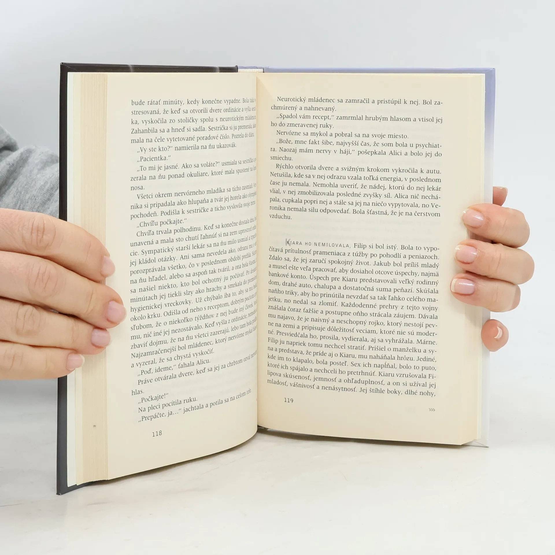 Keď sa vrátil, Kiara ležala nahá a tvárila sa, že spí. Videla sa mu nadpozemsky krásna. Dlhé, štíhle nohy mala prekrížené a preloženou rukou si cudne zakrývala prsia. Hlavu, hlboko zaborenú do podušky, mala otočenú nabok a ústa odchýlené. Vyzerala ako socha vytesaná z bieleho mramoru. Stál a nemohol z nej spustiť oči, tak ho očarila. Chvíľu bojoval s túžbou zobudiť ju a poslať ju preč, ale neodolal, opatrne si ľahol k nej a zľahka ju prikryl paplónom. Zahniezdila sa a pritisla k nemu. Mrnčala ako batoľa, ktoré niekto budí proti jeho vôli. Uvedomoval si, že robí veľkú chybu, keď ju tu necháva, ale zdravý úsudok po presnom emocionálnom knokaute zostal paralyzovaný. Vdychoval jej vôňu a dotyk jej pokožky mu opájal všetky zmysly...