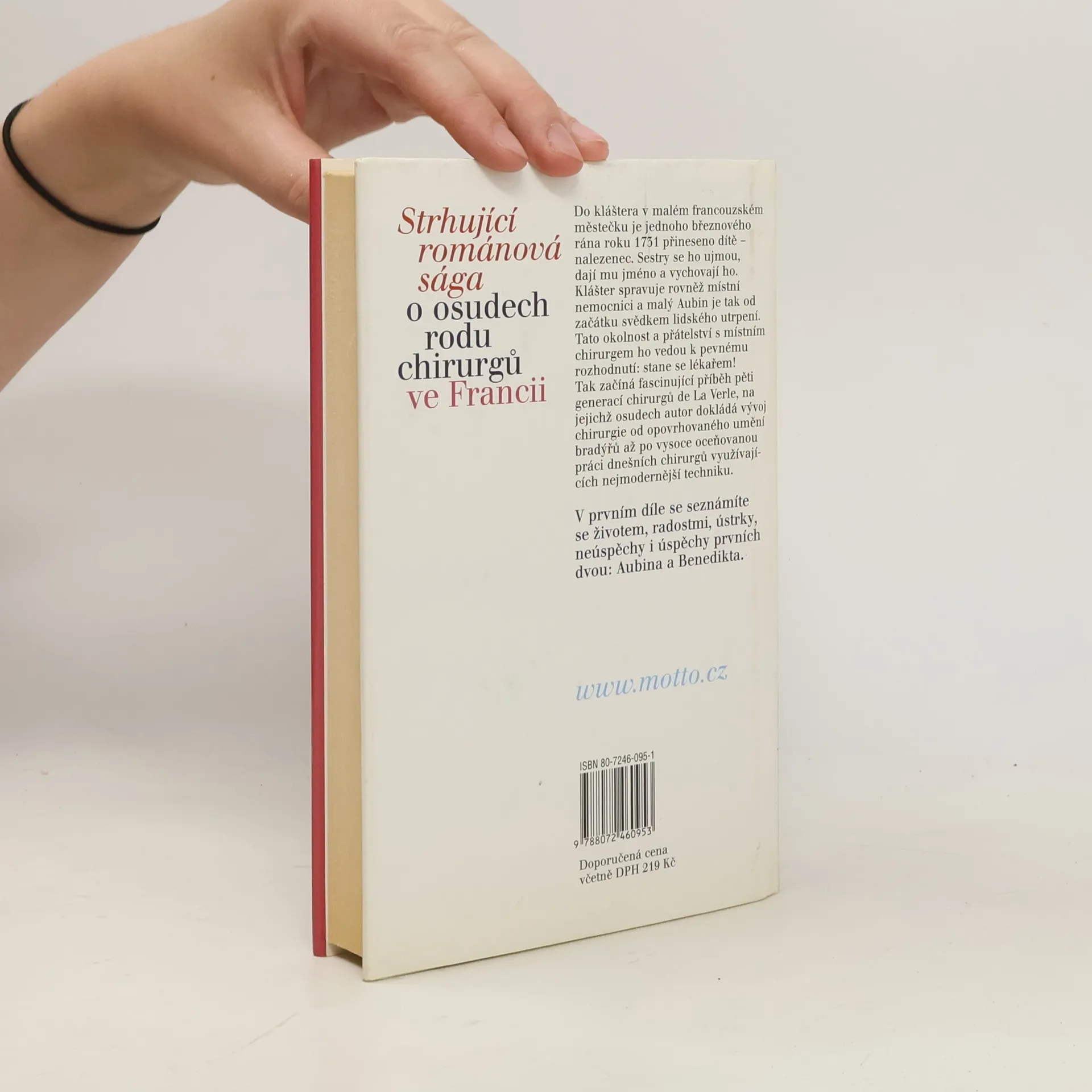 Do kláštera v malém francouzském městečku je jednoho březnového rána roku 1731 přineseno dítě- nalezenec. Sestry se ho ujmou, dají mu jméno a vychovají ho. Klášter spravuje rovněž místní nemocnici a malý Aubin je tak od začátku svědkem lidského utrpení. Tato okolnost a přátelství s místním chirurgem ho vedou k pevnému rozhodnutí: stane se lékařem! Tak začíná fascinující příběh pěti generací chirurgů de La Verle, na jejichž osudech autor dokládá vývoj chirurgie od opovrhovaného umění bradýřů až po vysoce oceňovanou práci dnešních chirurgů využívajících nejmodernější techniku.