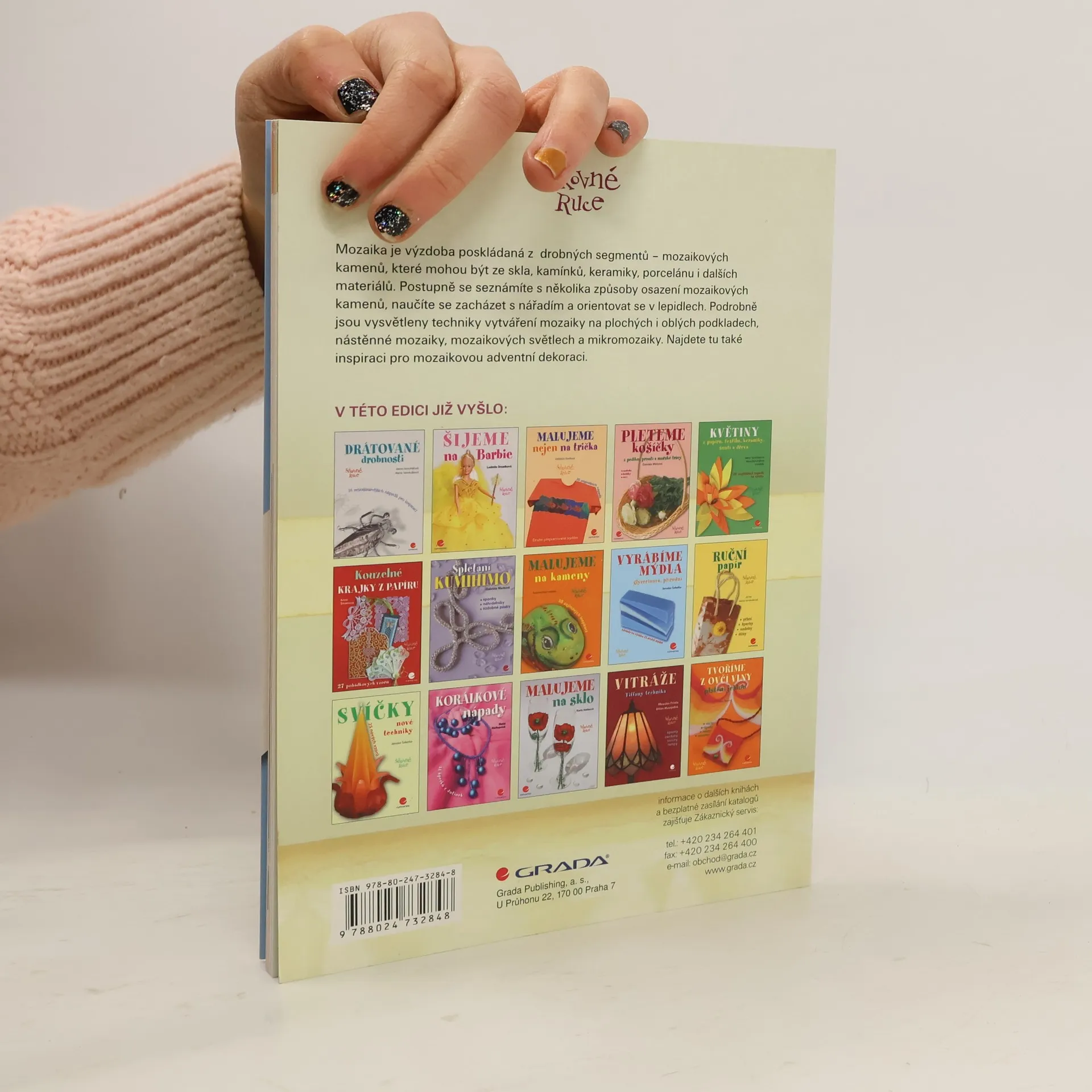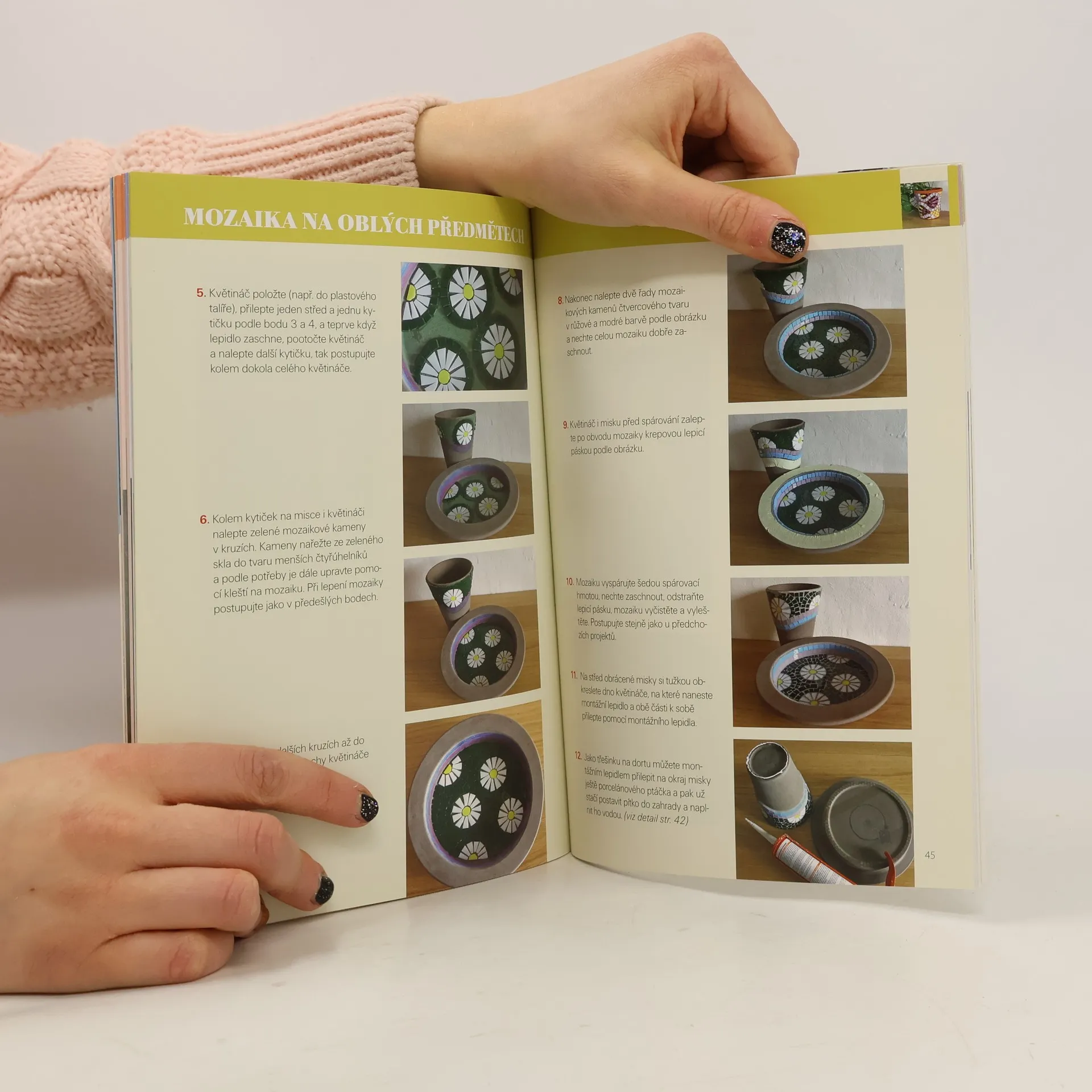 Kniha je věnována technice mozaikování. Mozaika je výzdoba poskládaná z drobných segmentů – mozaikových kamenů, které mohou být ze skla, kamínků, keramiky, porcelánu i dalších materiálů. Postupně se seznámíte s několika způsoby osazení mozaikových kamenů, naučíte se zacházet s nářadím a orientovat se v lepidlech. Podrobně jsou vysvětleny techniky vytváření mozaiky na plochých i oblých podkladech, nástěnné mozaiky, mozaiková světla a mikromozaiky. Najdete tu také inspiraci pro mozaikovou adventní dekoraci.