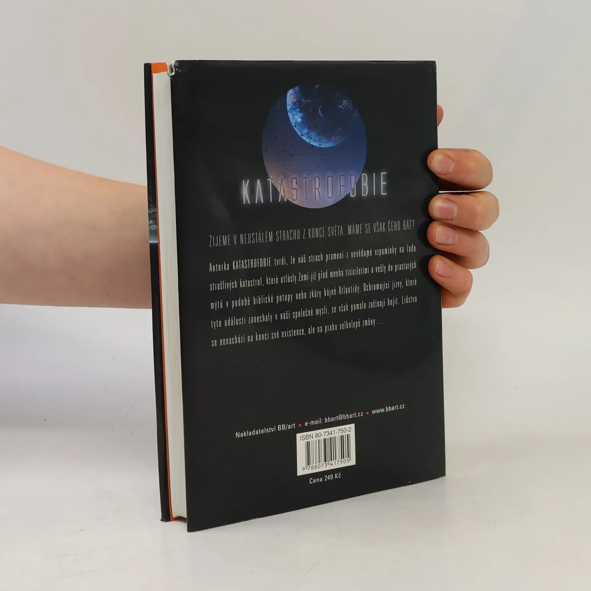 Podtitul: Pravda za světovými změnami v nadcházejícím věku světla V Katastrofobii úspěšná autorka Barbara Hand Clowová zkoumá legendární katastrofy a ukazuje nám, že stojíme na pokraji věku báječného kreativního růstu, ačkoli nám různá proroctví o nadcházející zkáze tvrdí opak. Nedávné objevení pozůstatků prehistorických sídel pohřbených pod Černým mořem je posledním příspěvkem na rostoucí hromadu důkazů svědčících o tom, že mnohé „mýtické“ pohromy – pád Atlantidy, biblická potopa – se skutečně udály. Barbara Hand Clowová popisuje, jak série velkých katastrof, ke kterým došlo následkem masivní poruchy v zemské kůře před 11 500 lety, otřásla světem a zanechala hluboké jizvy v kolektivní psychice lidstva. Jsme zraněný druh a nezpracovaný strach, předávaný z generace na generaci, je příčinou soustavného očekávání apokalypsy, ať už má přijít v podobě Y2K nebo slavného konce mayského kalendáře v roce 2012. Katastrofobie odhaluje temné globální síly, které po tisíce let využívaly skrytého strachu k ovládání lidstva. Nacházíme se však uprostřed velkého posunu v 26 000 let dlouhém precesním cyklu Země, a všechno nasvědčuje tomu, že změny vědomí, k nimž došlo v uplynulých třiceti letech, jsou počátkem kolektivního uzdravení hlubokých ran a čeká nás doba aktivní tvořivosti.