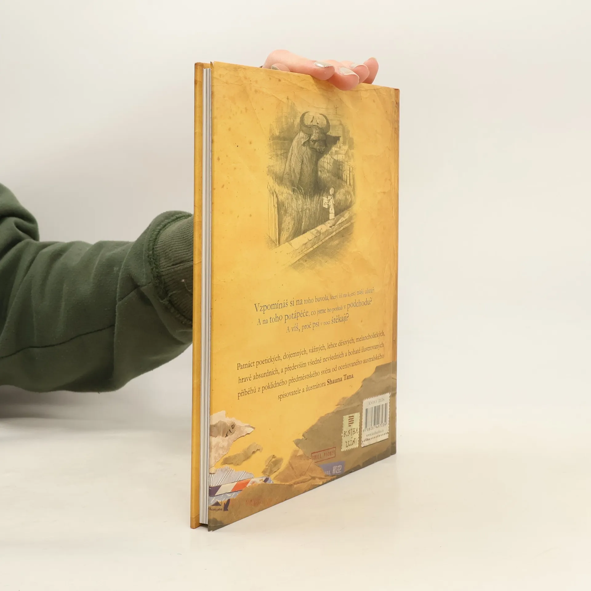 Příběhy z konce předměstí (2008) je antologie patnácti krátkých ilustrovaných povídek, které kombinují humor, poetiku, dojetí, vážnost, lehkou hrůzu, melancholii a absurdnost. Každý příběh se zaměřuje na podivné situace v běžném předměstském prostředí, jako je návštěva zahraničního studenta, dobrodružství dvou bratrů, obrovský dugong na trávníku, tajemný pokoj v domě, zlověstný stroj v parku nebo moudrý buvol na prázdné parcele. Klíčovým tématem je, jak obyčejní lidé reagují na tyto záhady a absurdity, a jak je jejich význam vnímán, ignorován nebo nepochopen. Tato mnohovrstevnatá kniha není určena pouze dětem nad 12 let, přesto získala řadu prestižních ocenění v kategorii knih pro děti a mládež. Shaun Tan (1974) vyrůstal na předměstí Perthu a vystudoval výtvarné umění a anglickou literaturu. Začínal jako ilustrátor hororových a sci-fi povídek, později se proslavil vlastními ilustrovanými knihami, které propojují společenská, politická a historická témata se surrealistickým viděním světa. Jeho díla, jako The Red Tree, The Lost Thing a The Arrival, mu přinesla mezinárodní uznání. Příběhy z konce předměstí jsou jeho poslední knihou, která byla oceněna v Austrálii, USA a Německu. V současnosti pracuje jako nezávislý umělec, spisovatel a režisér v Melbourne.