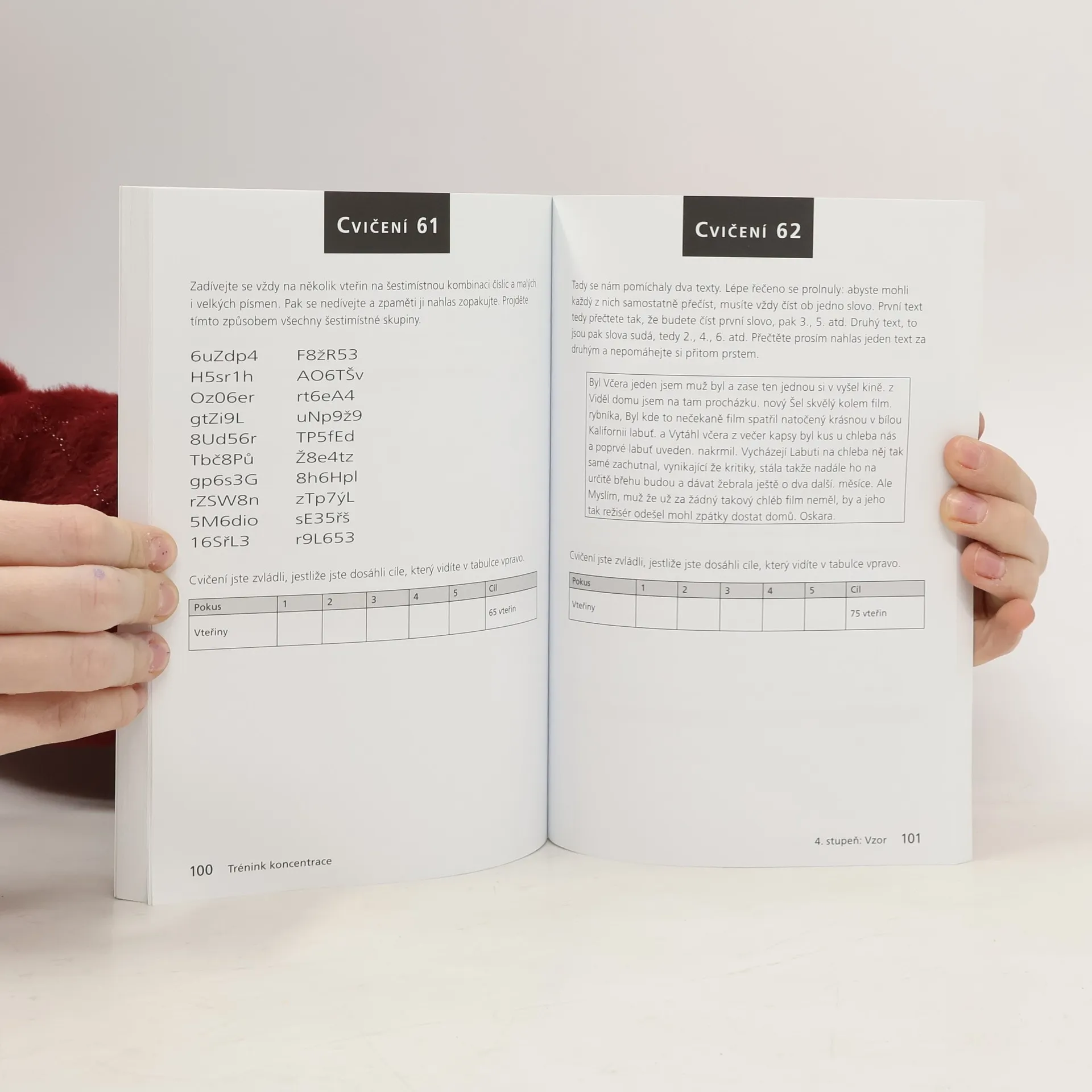 Kniha nabízí úvodní krátký test koncentrace, následuje pětiúrovňový soubor cvičení ke zlepšení soustředění (od začátečnické náročnosti až po vrcholně pokročilou). Cvičení se zaměřují na tři základní oblasti: rychlejší a lepší porozumění psanému textu, na rychlé reakce a rozhodování a na paměť a snazší učení. Poslední čtvrtina knihy představuje uvolňovací techniky pro osvěžení pozornosti (dechová cvičení, „mental fitness“), krátce se věnuje i tématu „brain food“, stravy stimulující mentální činnost. Knihu ocení studenti i pracující všech věkových kategorií, kteří chtějí osvěžit a zdokonalit svou schopnost soustředit se.