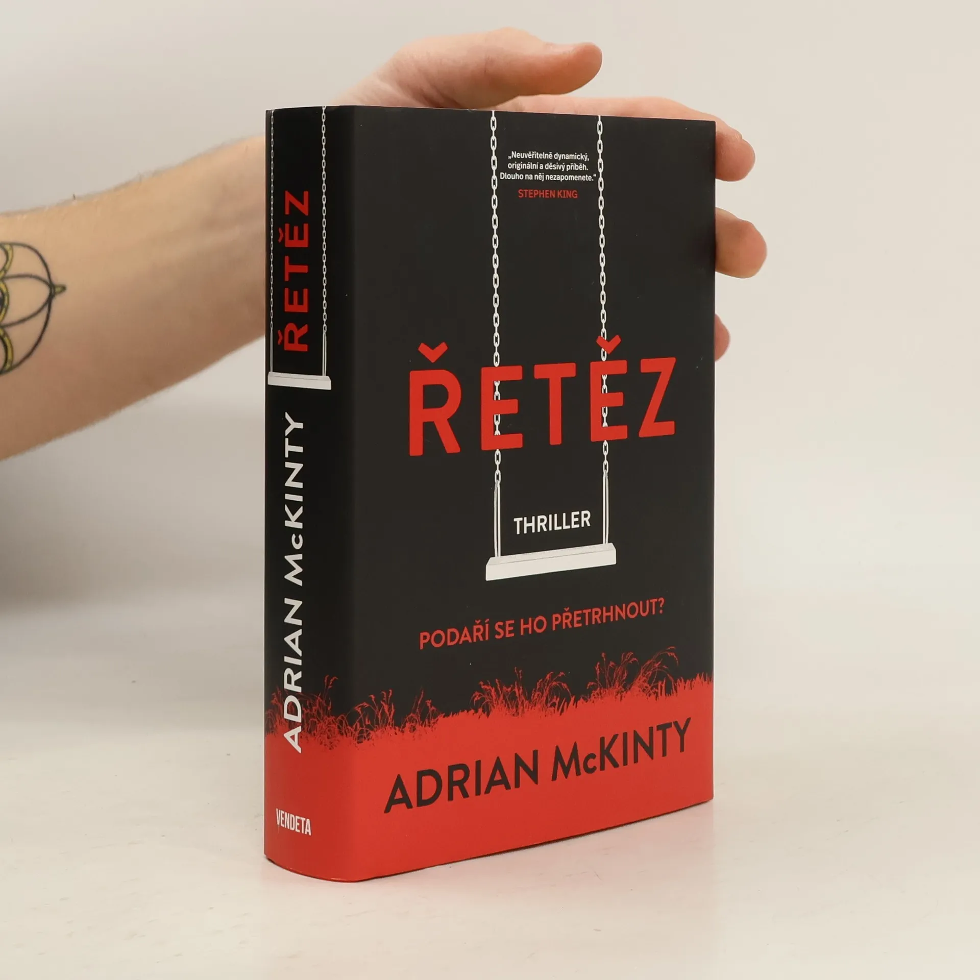 Musíte unést dítě, aby vaše dítě zůstalo naživu. Absurdní? Ano, jen dokud se to nestane právě vám. Na tomto půdorysu rozehrává jeden z nejvýraznějších současných autorů thrillerů a detektivek Adrian McKinty (doposud u nás vyšly tři jeho detektivní romány z řady s detektivem Seanem Duffym, zasazené do doby Nepokojů v Severním Irsku) příběh, jaký se snadno může stát noční můrou každého rodiče. Jsme v poklidném novoanglickém městečku, jemuž vládne tajuplný Řetěz. Nikdo o něm nemluví, nikdo se neodváží obrátit na policii ani na FBI. Vždyť jde o vaše dítě. Próza Adriana McKintyho má jako vždy spád a snadno vás nepustí ze svých spárů, připravte se, že vynecháte večeři a přejedete stanici, kde jste chtěli vystoupit. Zároveň se jeho text pozvedá z prvoplánového napětí k nevyřčeným otázkám po smyslu lidské existence, k hranicím morálky, k znepokojivému vědomí, že každé vítězství má svou cenu. Román, který ve vás bude dlouho doznívat.