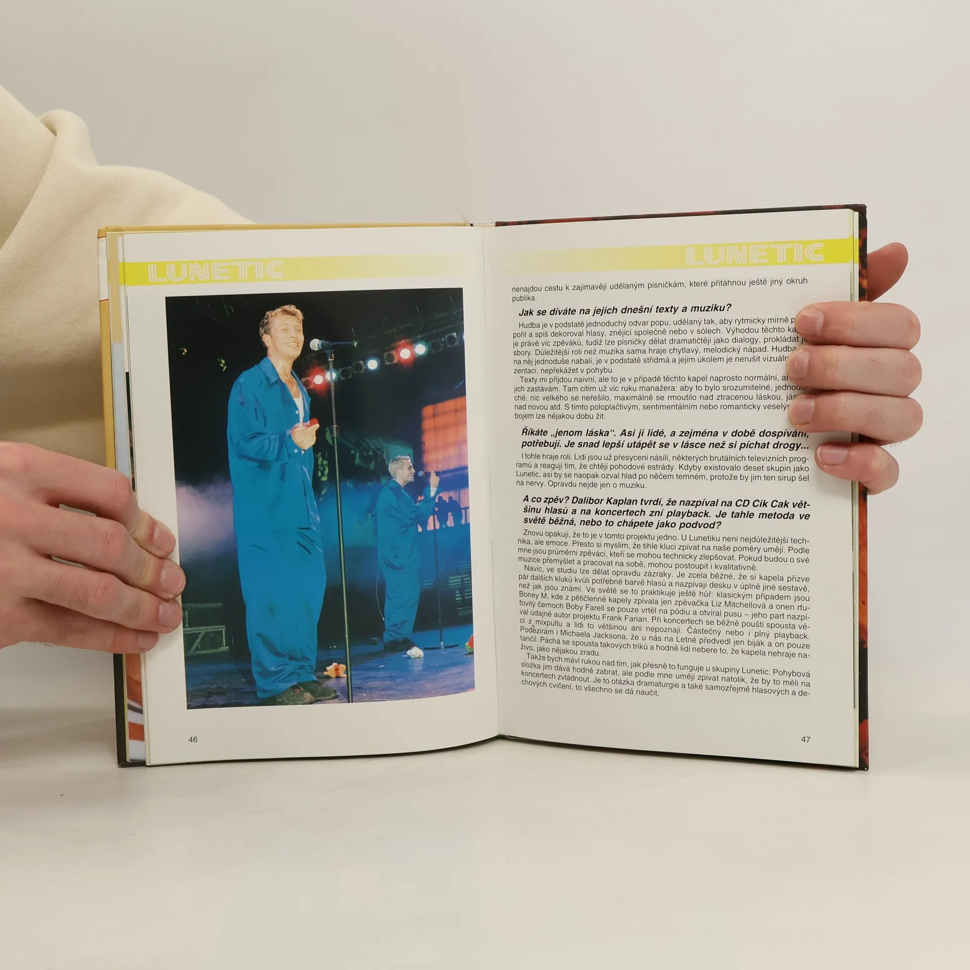 Publikace představuje českou hudební skupinu Lunetic. Z této knížky, v níž převládají fotografie, se lze dozvědět o protagonistech Luneticu opravdu všechno, včetně horoskopů a původní barvy vlasů. Existence skupiny Lunetic je formulována velmi jednoduše: "Jsme tu jen na jedno kafe, proto bychom měli svůj čas využít co nejlíp" a "Není to umění, velká kultura, ale zábavná show pro děti. Tak trochu kýč, který se má líbit". Za těchto okolností se vznik této knihy jeví jako zákonitost a fanynky skupiny ve věku od osmi do patnácti let si opravdu přijdou na své. Zůstavá ovšem otázka, kdy jim šikovní manažeři naservírují další klučičí kapelu, ušitou na míru. Součástí knihy byly i plakátky!