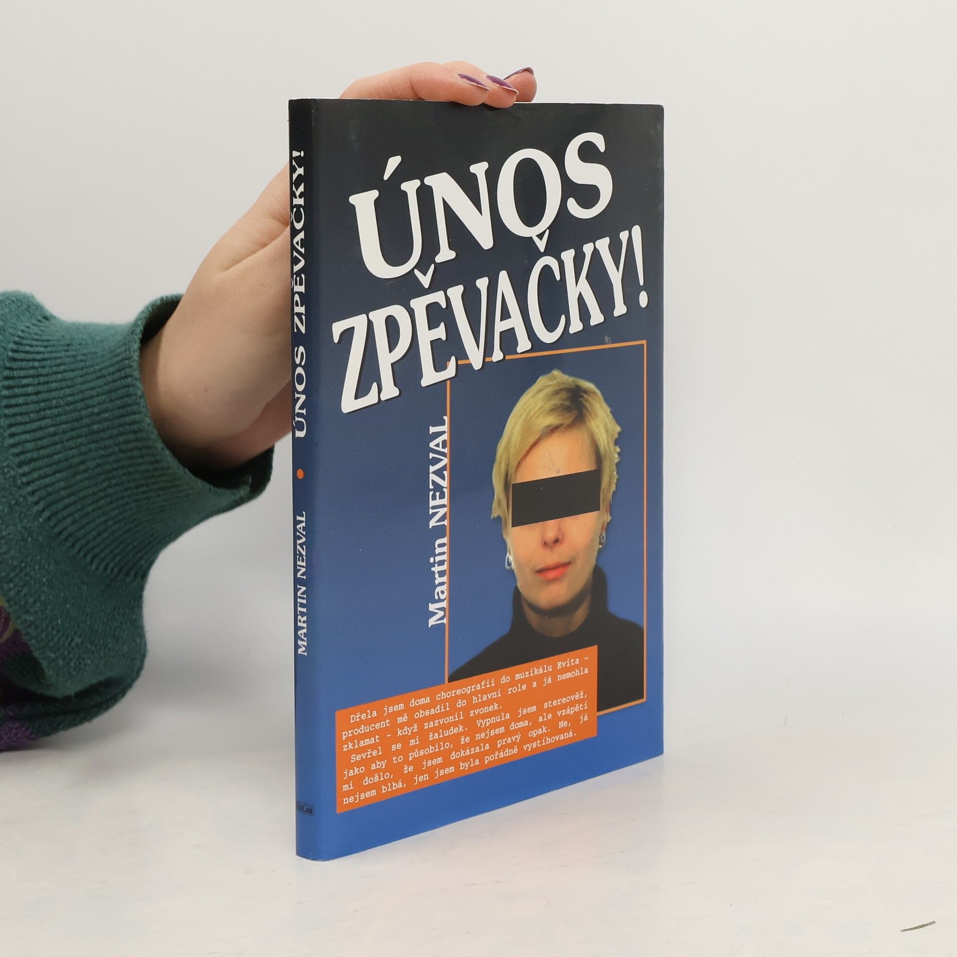 Kniha plná napětí a cynicky absurdního humoru, z něhož se rodí nejlesklejší svět. Zpěvačka Renata Máchová je unesena! A protože nic není, jak se jeví, do poslední chvíle nevíme, zda únosce je de facto zachránce nebo gangster. Každá záhada je však jasná investigativnímu novináři, někdejšímu prodavači bot, který o kauze referuje. A že se vždy pravidelně ukáže, že vše je jinak? Koho by zajímaly včerejší noviny?! Kola showbyznysu se musí točit dál! "Takový je showbyznys!" Ta věta zní v nejnovějším románu Martina Nezvala Únos zpěvačky jako zaklínadlo.