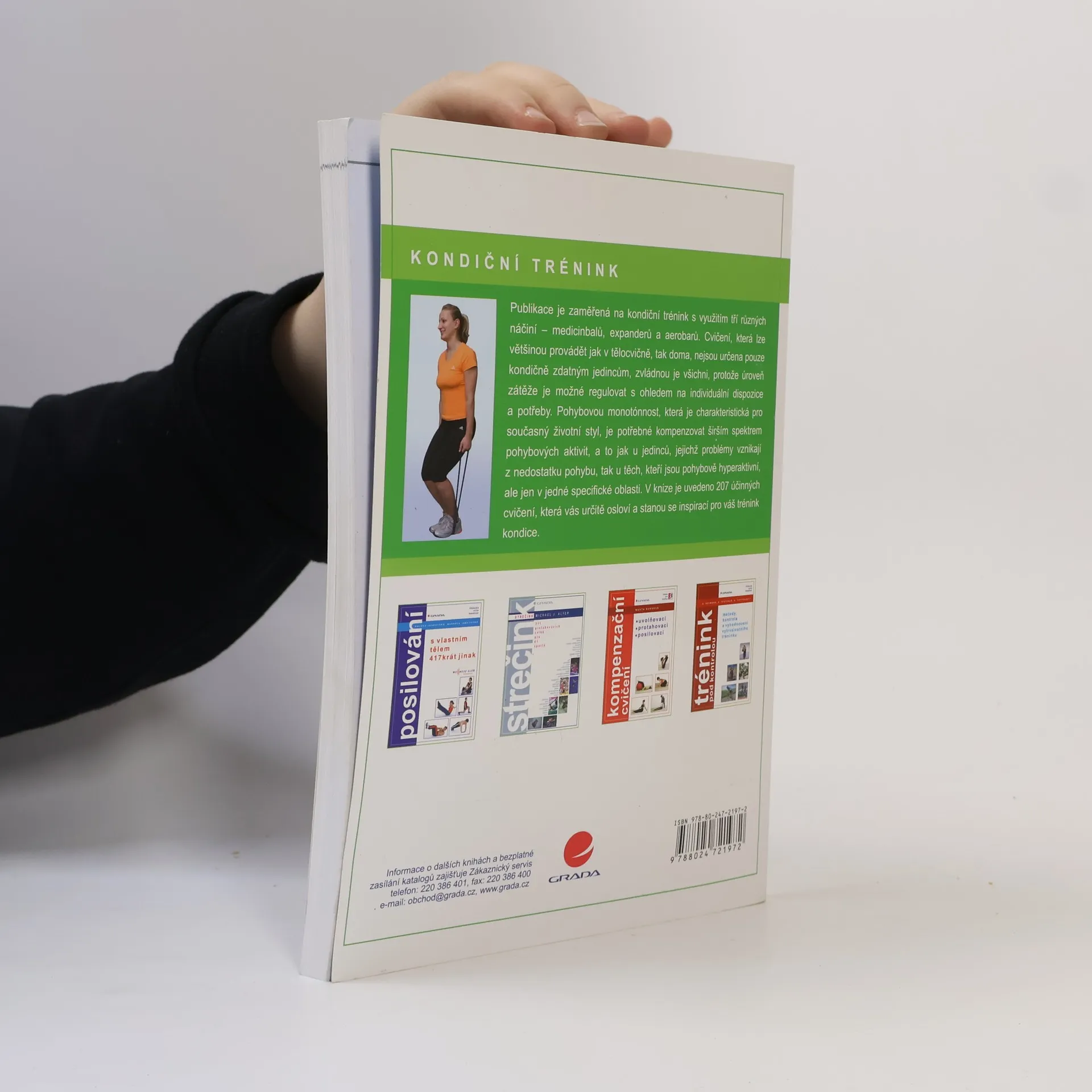Podtitul: 207 cvičení s medicinbaly,expandery a aerobary Publikace je zaměřená na kondiční trénink s využitím tří různých náčiní - medicinbalů, expanderů a aerobarů. Cvičení, která lze většinou provádět jak v tělocvičně, tak doma, nejsou určena pouze kondičně zdatným jedincům, zvládnou je všichni, protože úroveň zátěže je možné regulovat s ohledem na individuální dispozice a potřeby. Pohybovou monotónnost, která je charakteristická pro současný životní styl, je potřebné kompenzovat širším spektrem pohybových aktivit, a to jak u jedinců, jejichž problémy vznikají z nedostatku pohybu, tak u těch, kteří jsou pohybově hyperaktivní, ale jen v jedné specifické oblasti. V knize je uvedeno 207 účinných cvičení, která vás určitě osloví a stanou se inspirací pro váš trénink kondice.