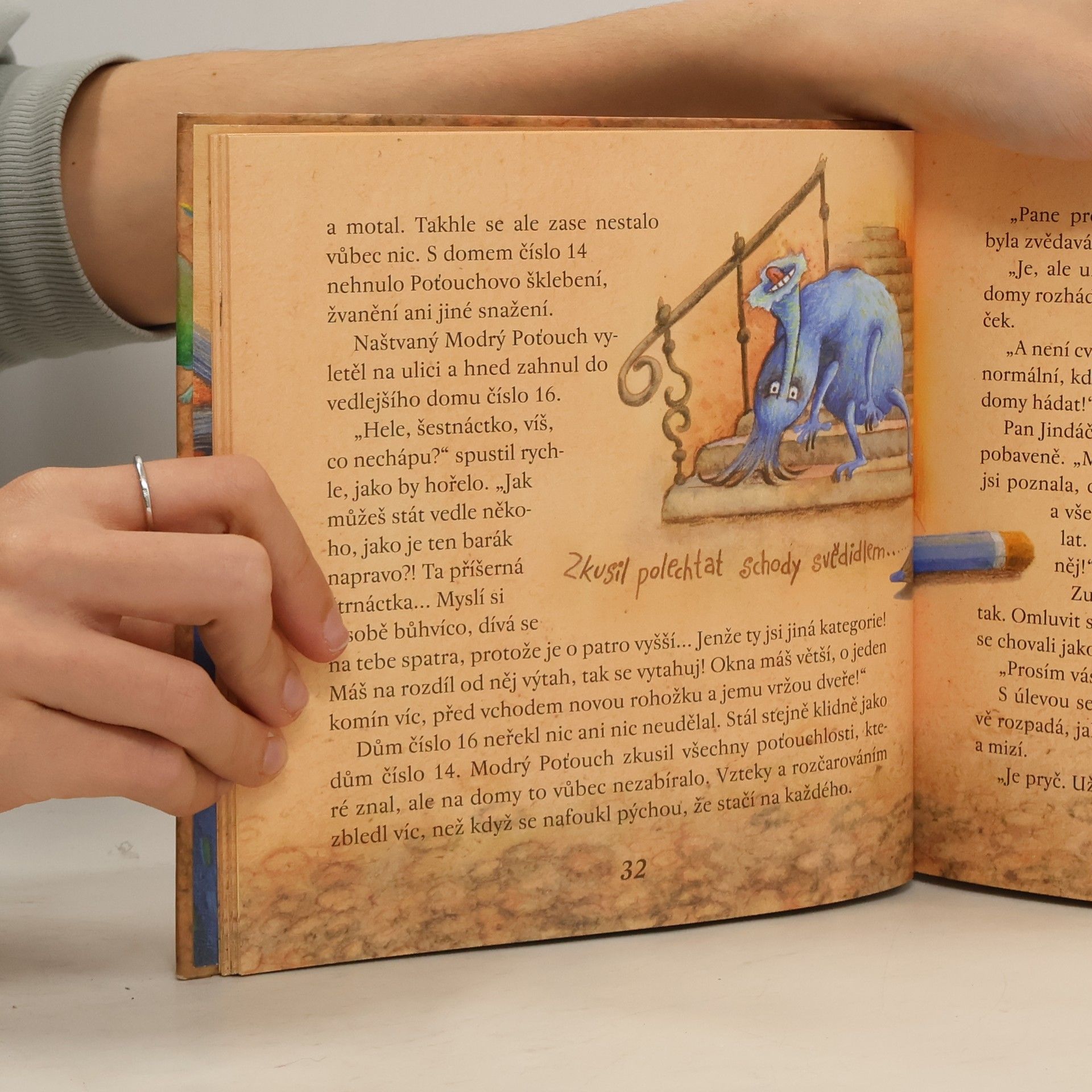 Poťouch bývá různě velký a různě barevný. Každý Poťouch má trumpetkové našeptávadlo, dva z pěti prstů na ruce výrazně delší, těm se říká popichovadla, a zbylé tři prsty jako přísavky. Štětiny na šišaté hlavě se odborně nazývají svědidla. Co se svědidel týká, může být Poťouch blonďák, rezatec i černoštětináč. Nijak zvlášť na tom nezáleží, protože všichni Poťouchové jsou neviditelní! Tohle je jediná knížka, kde je můžete vidět.