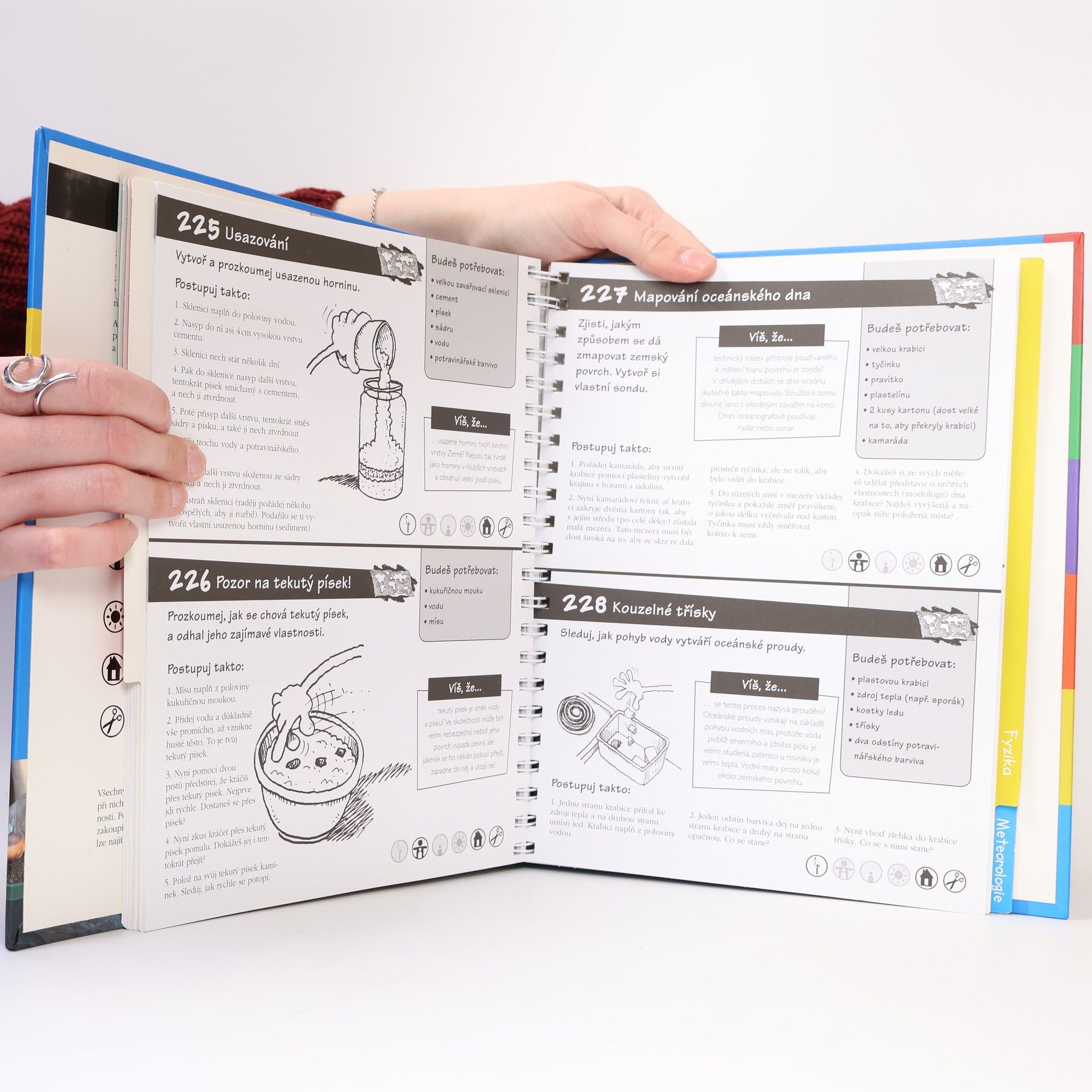 Jak vytvořit vlastní činnou sopku? Jak vzniká duha? Na podobné otázky z oboru astronomie, geologie, zeměpisu, biologie, chemie, fyziky či meteorologie dává tato kniha vzrušující odpovědi. Provádění pokusů vytvoří u dětí základ pro seriózní přístup k vědě, pomůže rozvíjet představivost a intelektuální kreativitu a posílí zájem o svět a vesmír, který je obklopuje. Pokusy jsou doprovázeny vtipnými kresbami kreslíře komiksů a knižního ilustrátora Glena Singletona. Pokusy v této knize budou zajímat děti ve věku od čtyř do dvanácti let.