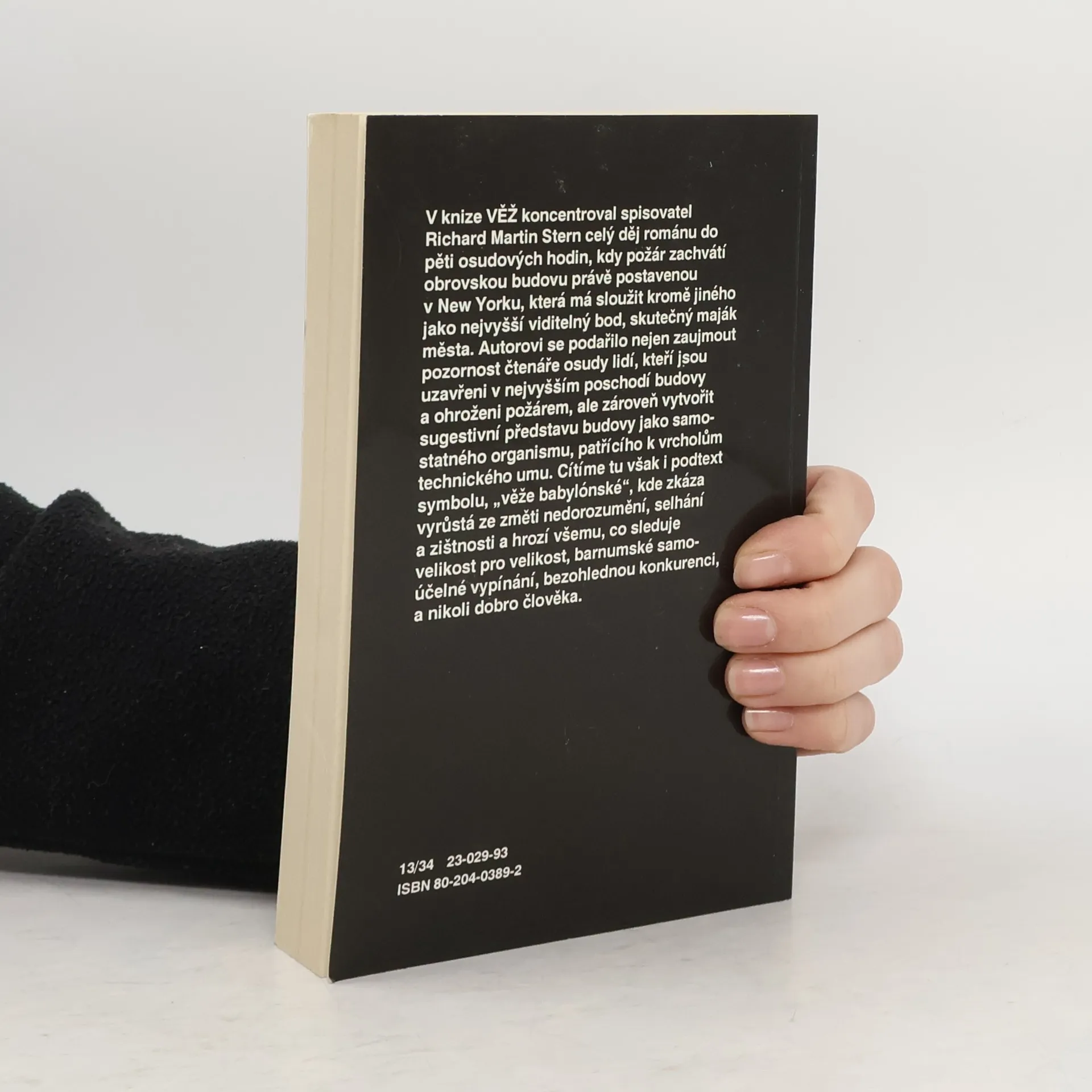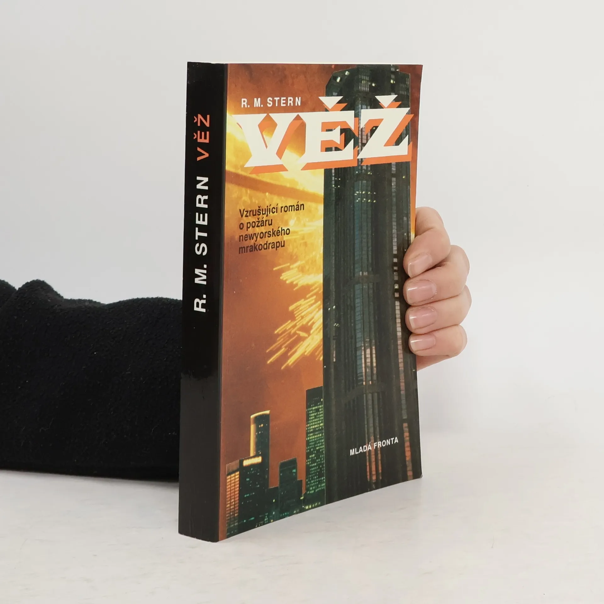 V knize Věž koncentroval spisovatel Richard Martin Stern celý děj románu do pěti osudových hodin, kdy požár zachvátil obrovskou budovu právě postavenou v New Yorku, která má sloužit kromě jiného jako nejvyšší viditelný bod, skutečný maják města. Autorovi se podařilo nejen zaujmout pozornost čtenáře osudy lidí, kteří jsou uzavřeni v nejvyšším poschodí budovy a ohroženi požárem, ale zároveň vytvořit sugestivní představu budovy jako samostatného organismu, patřícího k vrcholům technického umu. Cítíme tu však i podtext symbolu, "věže babylónské", kde zkáza vyrůstá ze změti nedorozumění, selhání a zištnosti a hrozí všemu, co sleduje velikost pro velikost, barnumské samoúčelné vypínání, bezohlednou konkurenci, a nikoli dobro člověka.