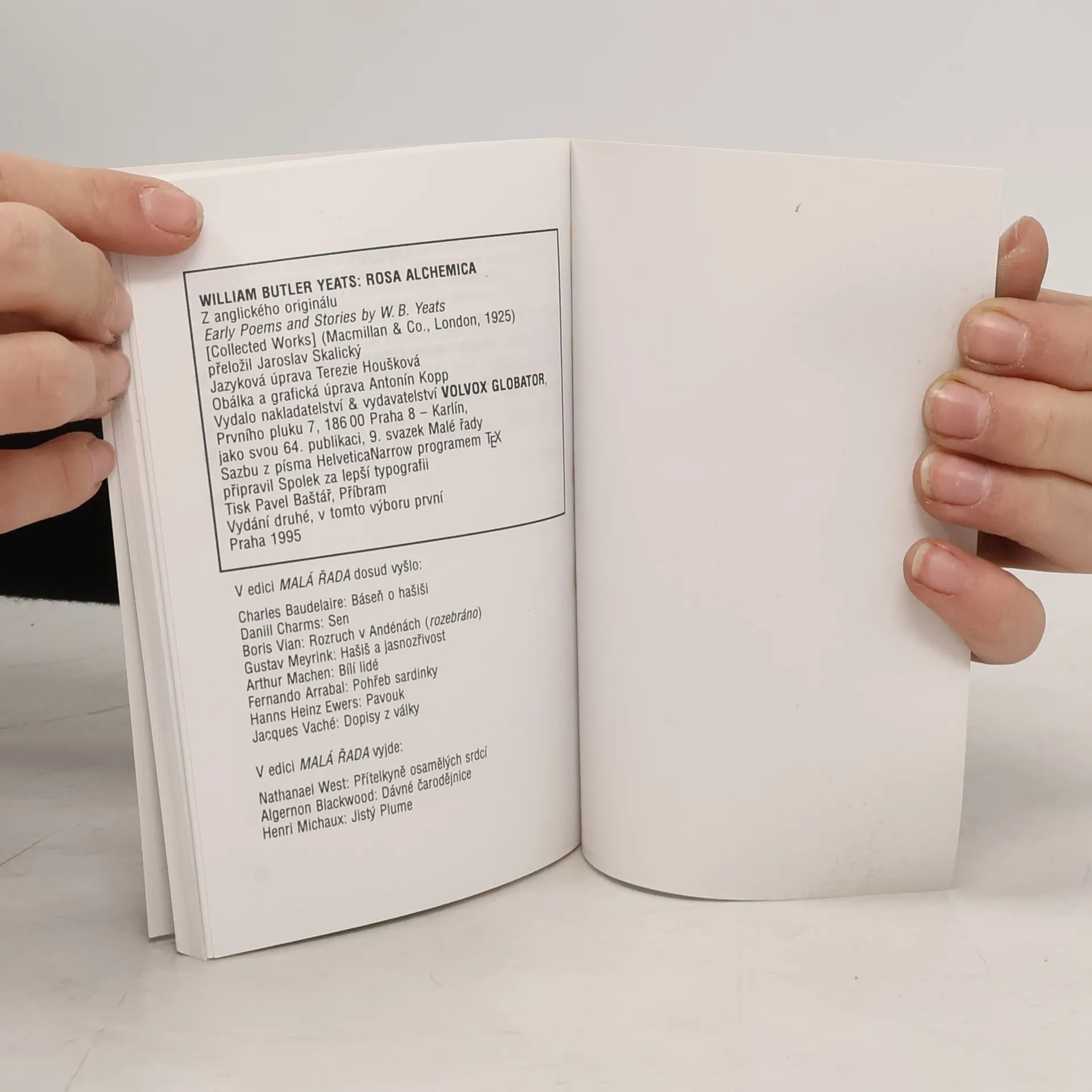 Soubor povídek irského autora je psán na pomezí lidové báje či pohádky, vkládá sem střípky irských bájí i visionářské zážitky. Králova moudrost -- Hrdý Costello, MacDermotova dcera a zlý jazyk -- Desky zákona -- Klanění králů * Doslov Jiří Okrajek: Bratr Démon Est Deus Inversus patřil již mezi mágy budoucího světa. Alespoň tak jej hodnotí Philip Roset ve sborníku „Mystéria". W. B. Yeats se narodil roku 1865 a do centra společenského dění vstoupil kolem roku 1885. Jeho mládí ho předurčilo k tomu, aby se postupně postavil do první řady radikálů bojujících o kulturní a společenskou obrodu Irska. Jeho hloubavá duše ho však naopak vedla k esotemím vědám. Vycházel z novoplatónské filosofie, podobně jako mnoho ostatních budoucích adeptů tajné vědy. Do mystérií rosenkruciánů byl zřejmě zasvěcen Robertem Wentworthem Littlem, avšak členem jeho rosenkruciánské lóže zřejmě ještě nebyl. V roce 1887 je již určitě při založení řádu Zlatý úsvit. Činnost této lóže měla dalekosáhlý dopad nejenom na kulturní dění Anglie, ale důsledky její činnosti se odrazily i na kontinentě. V čele lóže stanuli Woodman Mathers a Wynn Westcott, který byl jedním z těch, co mladého básníka pomáhali uvést do světa okultních nauk. V tomto řádu Yeats přijal nové jméno – Bratr Démon Est Deus Inversus. Henri Bergson píše v dopise své sestře o svém setkání s básníkem, o kterém mluví jako o předurčeném duchovním vůdci irského národa. Tomuto předurčení dává za pravdu nejenom spoluúčast na založení národního divadla v Dublinu, provázanost díla s irskou historií a bájeslovím, ale i jeho činnost ve funkci velmistra řádu Zlatého úsvitu po odchodu S. L Matherse. Podle svědectví předsedal zasedání ve skotské suknici, s červenou maskou a zlatou dýkou u pasu. Vysoké zasvěceni, kterého dosáhl, se promítá i do jeho tvorby. V jedné ze svých esejí uvádí, že po způsobu starých mágů maluje slovy obrazy ne nepodobné snu, neboť pocit radostí lze nejlépe přenést vtipem, pocit sounáležitosti světa magií okamžiku. Do evropské hermetické tradice vkládá střípky irských bájí a vizionářské zážitky. Jeho filosofická i mystická práce v mnohém navazuje na Williama Blakea. „Prazdrojem všeho je Bůh; světlo z něj vyzařující jest duší světa. Je dobře rozeznávati mezi světem materiálním, viditelným a světem ideje: tento jest světem vzorů, z něhož teprve dlouhou řadou emanací vzniká matérie. Je člověku dáno svět idejí viděti, či nemůže nad materii proniknout?" Fantasie, odpovídají Blake i Yeats, vidí věci v jejich pravé, ideální, obrazné realitě. S Blakem má Yeats i společné vnitřní vidění. William Blake vypravoval, že jako dítě viděl Pánaboha u okna s anděly v ratolestech a proroka Ezechiela pod keřem. Jako dospělý muž mluvil zcela vážně o svém styku s Mlltonem a jinými duchy minulosti. Yeats mluví o stejných prožitcích. Ossian, nejmilejší básníkův hrdina, jako by v něm znova ožíval spolu s věšteckými zjeveními. Yeats přesto, že vstoupil do literatury s přicházejícím dvacátým stoletím, je autorem starokeltským. V jeho duši se slučuje mysticismus J. W. Goetha s obrazností přírody v díle Lorda Byrona. Soubor povídek Rosa Alchemica patří v kontextu básníkova díla k jeho nejmystičtějším pracím. V krátkých textech s jasnou symbolikou (viz tři stařeny, šedý jestřáb, básník, oči, hlas či stařec, noc, voda, oheň, zpěv, zelený beryl, bledý opál...), psaných na pomezí lidové báje či pohádky, naznačuje základní prvky velkého zasvěcení. Ve zpěvu jestřábích stařen v povídce Králova moudrost, jako by parafrázoval vztah křesťanství a pohanských mýtů. Yeatsova představa o prapůvodní jednotě světa zde dostává jasný básnický obraz. Pokud budeme pozorně pročítat jednu povídku za druhou a budeme srovnávat význam jednotlivých oddílů s významem celku, objevíme, že pod nosnými příběhy se skrývá daleko širší paleta různých dějů. Pod pohádkami končícími moralitou nalézáme příběhy o vztazích pohanských dob s křesťanstvím, o vyrovnanosti sil bílé a černé magie, podobenství o hledání nové cesty a zároveň Yeatsovo vyznání z lásky k rodnému Irsku. Starokeltské balady zde ožívají novým životem. Jejich obraznost je jednou z cest do nitra naší duše.