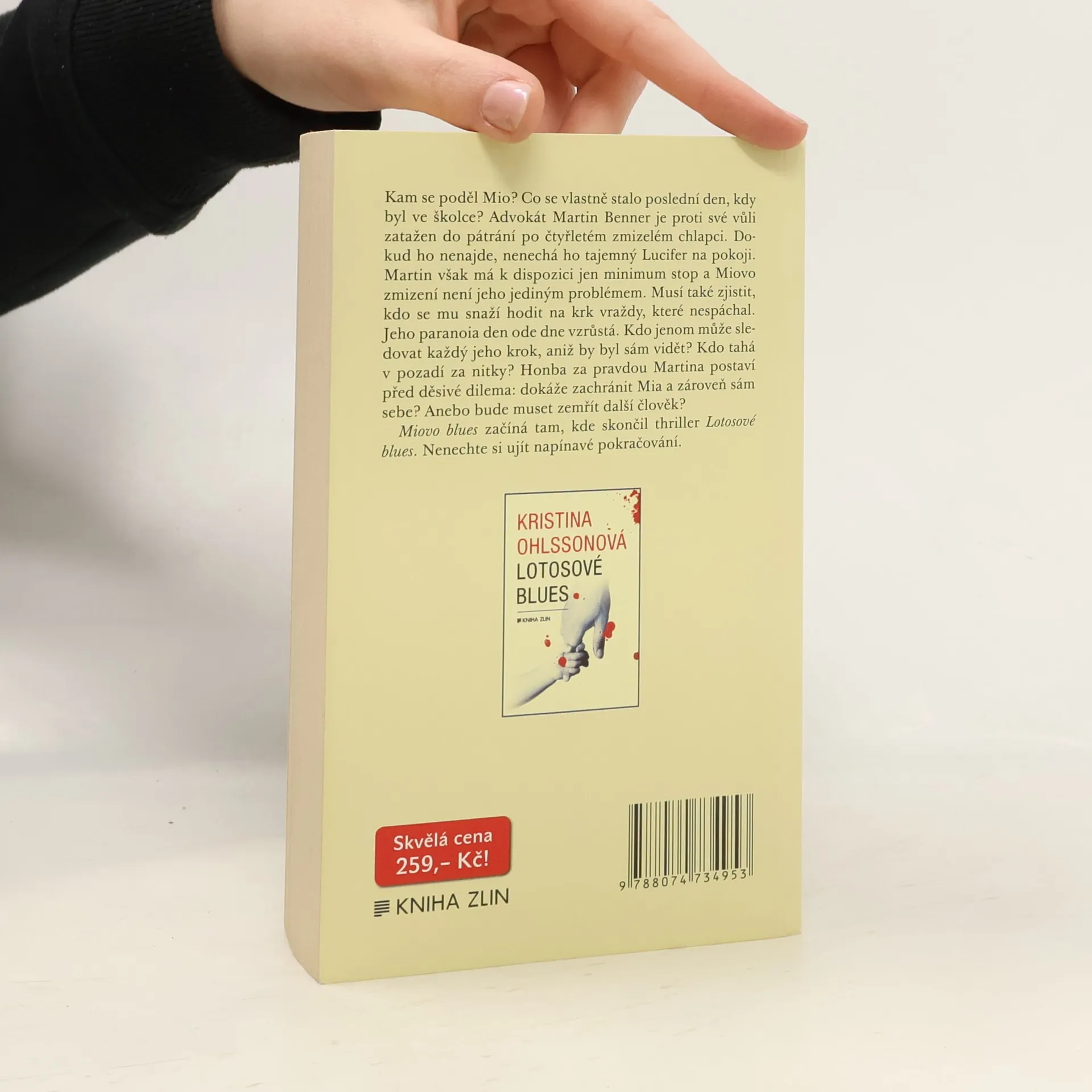 Kam se poděl Mio? Co se vlastně stalo poslední den, kdy byl ve školce? Advokát Martin Benner je proti své vůli zatažen do pátrání po čtyřletém zmizelém chlapci. Dokud ho nenajde, nenechá ho tajemný Lucifer na pokoji. Martin však má k dispozici jen minimum stop a Miovo zmizení není jeho jediným problémem. Musí také zjistit, kdo se mu snaží hodit na krk vraždy, které nespáchal. Jeho paranoia den ode dne vzrůstá. Kdo jenom může sledovat každý jeho krok, aniž by byl sám vidět? Kdo tahá v pozadí za nitky? Honba za pravdou Martina postaví před děsivé dilema: dokáže zachránit Mia a zároveň sám sebe? Anebo bude muset zemřít další člověk? Miovo blues začíná tam, kde skončil thriller Lotosové blues. Nenechte si ujít napínavé pokračování.