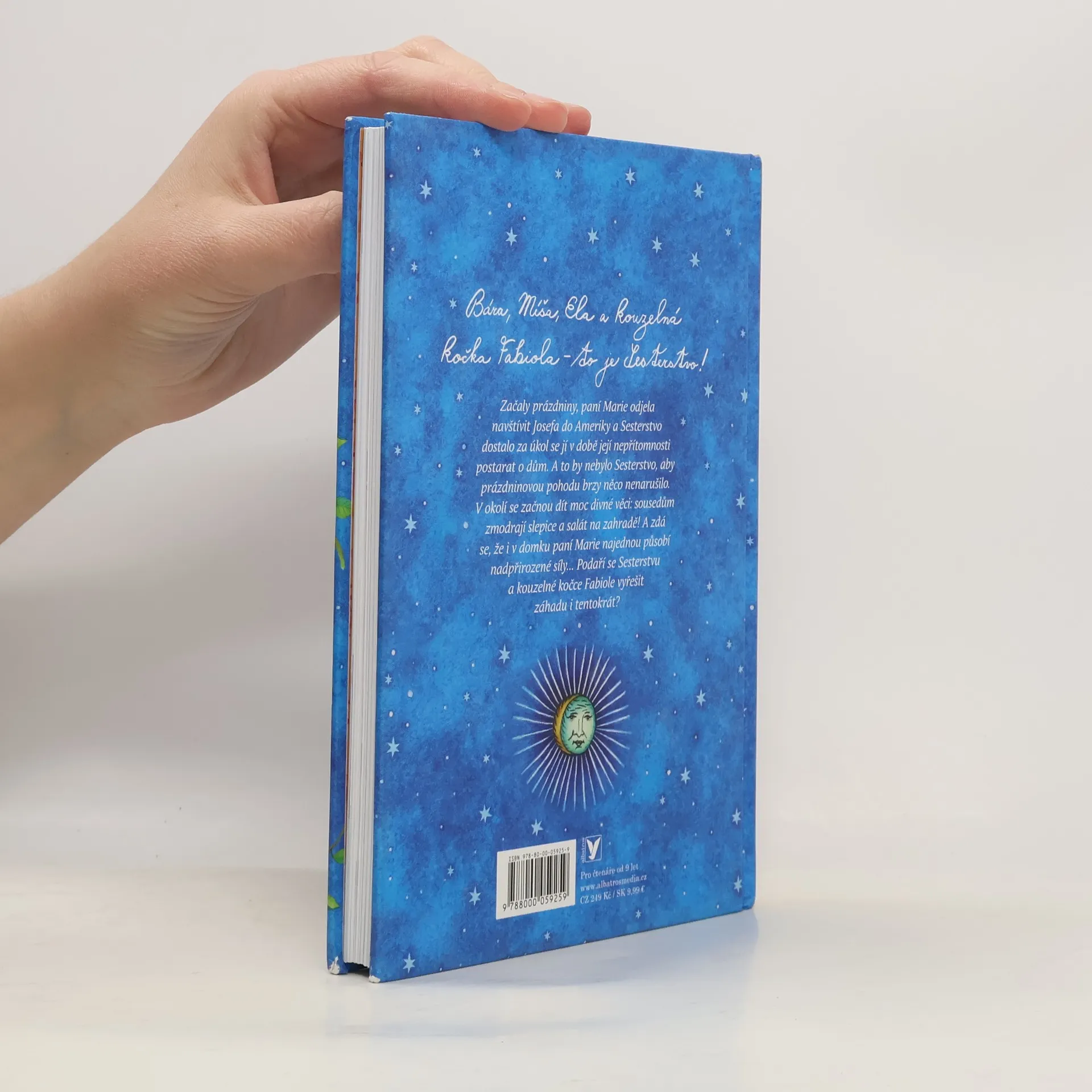 Třetí, tentokrát prázdninové dobrodružství Sesterstva kouzelné kočky Fabioly! Začaly prázdniny, paní Marie odjela navštívit Josefa do Ameriky a Sesterstvo dostalo za úkol se jí v době její nepřítomnosti postarat o dům a kočku Fabiolu. A to by nebylo Sesterstvo, aby prázdninovou pohodu brzy něco nenarušilo. V okolí se začnou dít moc divné věci: sousedům zmodrají slepice a salát na zahradě! A zdá se, že i v domku paní Marie najednou působí nadpřirozené síly... Podaří se Sesterstvu a kouzelné kočce Fabiole vyřešit záhadu i tentokrát?