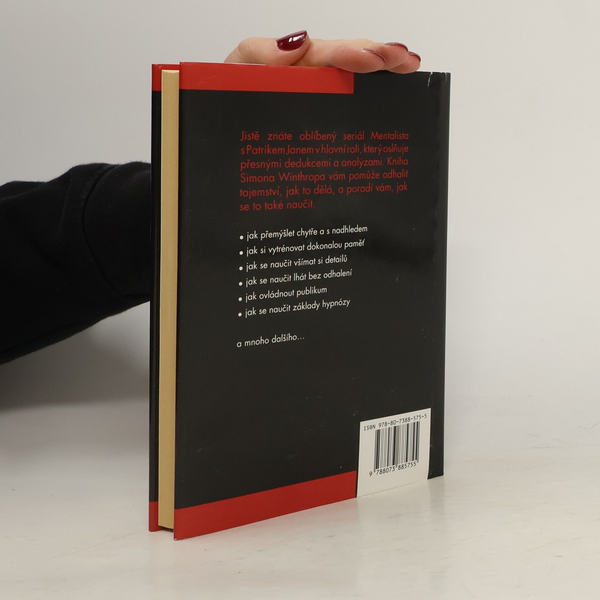 Kniha na motivy úspěšného stejnojmeného seriálu s Patrikem Janem v hlavní roli. Autor knihy Simon Winthrop si klade za cíl čtenáře seznámit s rolí Mentalisty, pochopit, jak pracuje a jaké má zvyky. Naučíte se technikám a metodám, které Mentalista používá. Jak rozumět neverbální komunikaci? Jak funguje meditace? A hypnóza? Jak a při jakých příležitostech lze nové techniky procvičovat? Originální příručka, na jejímž konci budete schopni číst v ostatních takřka jako v otevřené knize. Kniha, která nadchne nejen fanoušky původního seriálu, ale kohokoli, koho láká proniknout do tajů psychologie a lépe se zorientovat v chování lidí.