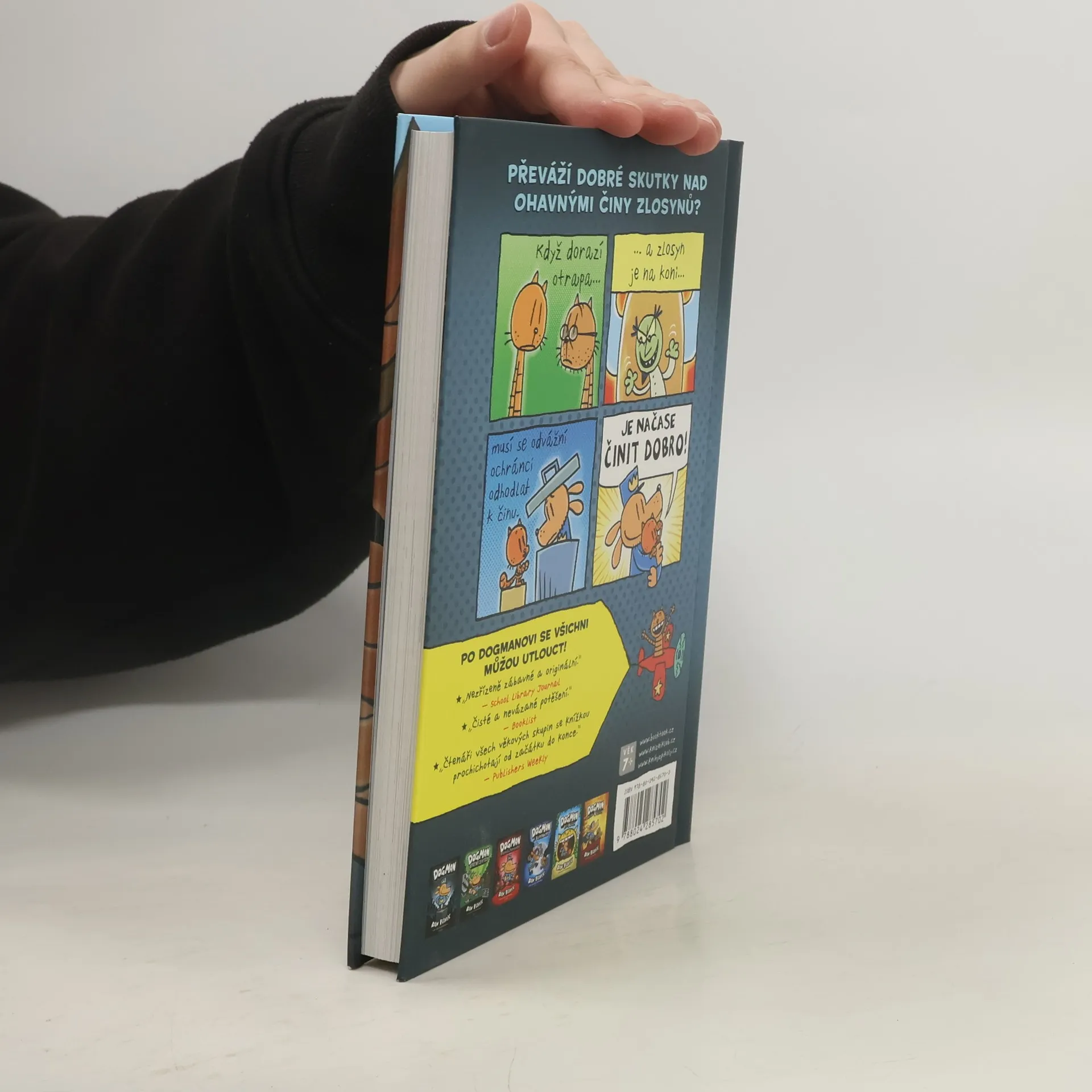 Je to vůbec možné? Zrodil se zbrusu nový zákeřný padouch! Říká si Dr. Yják a pořád tvrdí, že už ho známe (ale my víme své!). Rozhodl se využít Dogmanovy největší slabosti – lásky k míčkům! Jaká podlost. Dogmanovi kámoši Peťulka a Restart si ale usmyslí, že největšího psího policajta všech dob pořádně vytrénují, aby mičudovému pokušení odolal. Mezitím kujou své proradné pikle i jiní zloduši, nám už dobře známá parta, která si říká BLECHY… Jak to všechno dopadne? A jakou roli v tom hraje Komandér Cupcake? Dozvíte se v knize!