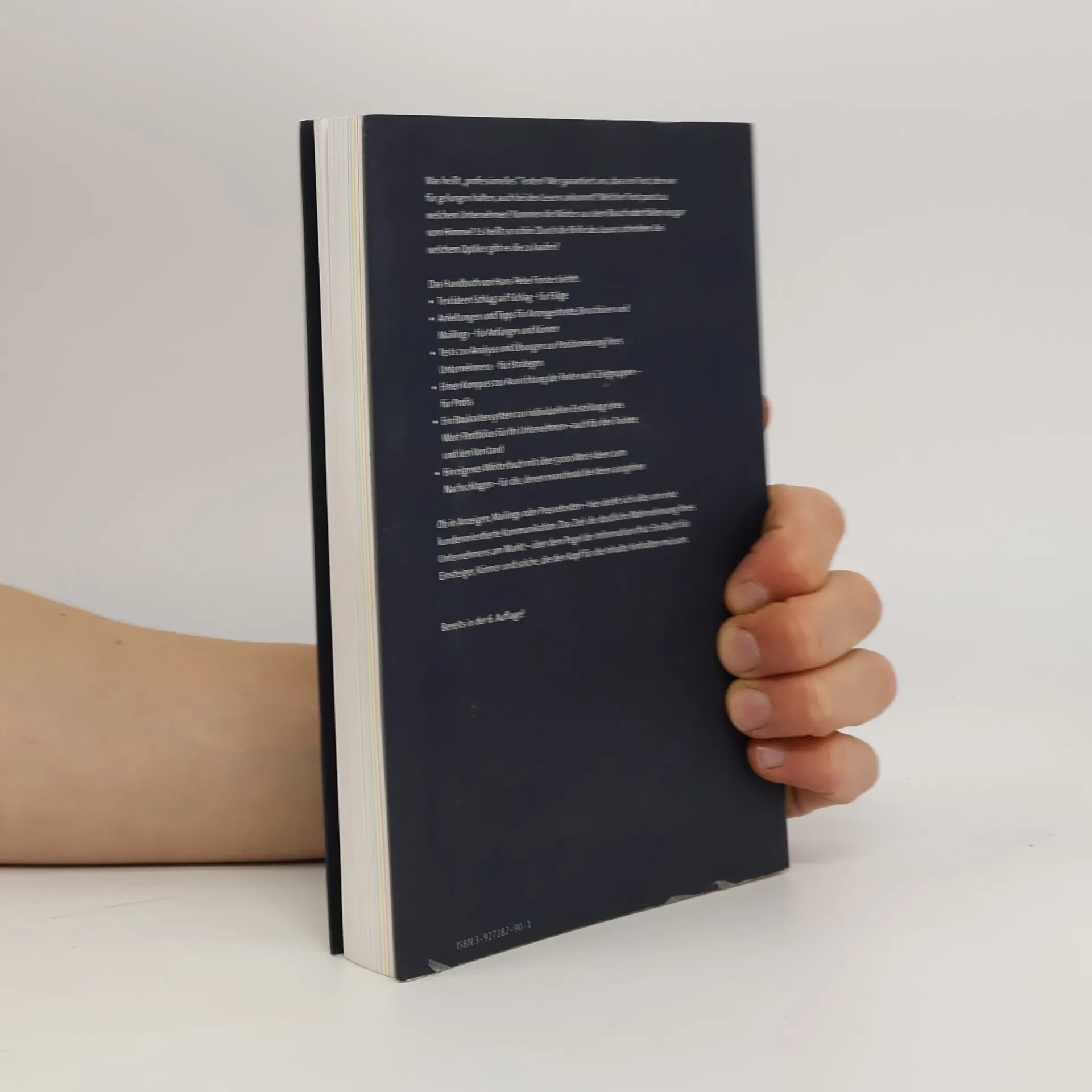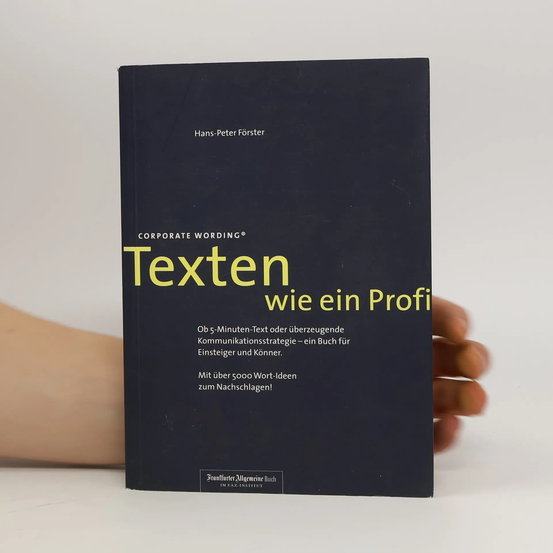 Was heißt „professionelles“ Texten? Wer garantiert uns, dass ein Text, den wir für gelungen halten, auch bei den Lesern ankommt? Welcher Text passt zu welchem Unternehmen? Kommen die Wörter aus dem Bauch oder fallen sie gar vom Himmel? Es heißt so schön: Durch die Brille des Lesers schreiben. Bei welchem Optiker gibt es die zu kaufen? Das Handbuch von Hans-Peter Förster bietet: Textideen Schlag auf Schlag – für Eilige Anleitungen und Tipps für Anzeigentexte, Broschüren und Mailings – für Anfänger und Könner Tests zur Analyse und Übungen zur Positionierung Ihres Unternehmens – für Strategen Einen Kompass zur Ausrichtung der Texte nach Zielgruppen – für Profis Ein Baukastensystem zur individuellen Erstellung eines Wort-Portfolios für Ihr Unternehmen – auch für den Trainee und den Vorstand Ein eigenes Wörterbuch mit über 5000 Wort-Ideen zum Nachschlagen – für die, denen manchmal die Ideen ausgehen. Ob in Anzeigen, Mailings oder Pressetexten – hier dreht sich alles um eine kundenorientierte Kommunikation. Das Ziel: die deutliche Wahrnehmung Ihres Unternehmens am Markt – über dem Pegel der Informationsflut. Ein Buch für Einsteiger, Könner und solche, die den Kopf für die Inhalte hinhalten müssen. Bereits in der 6. Auflage!