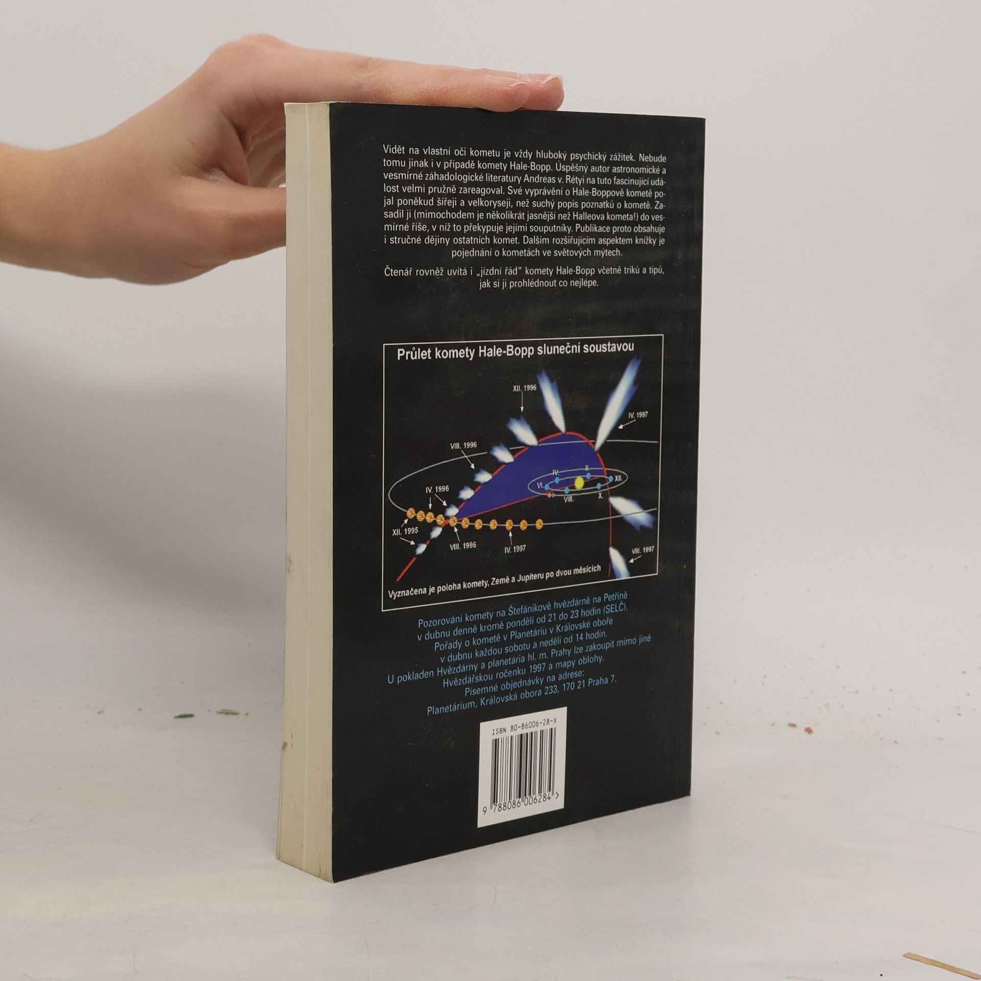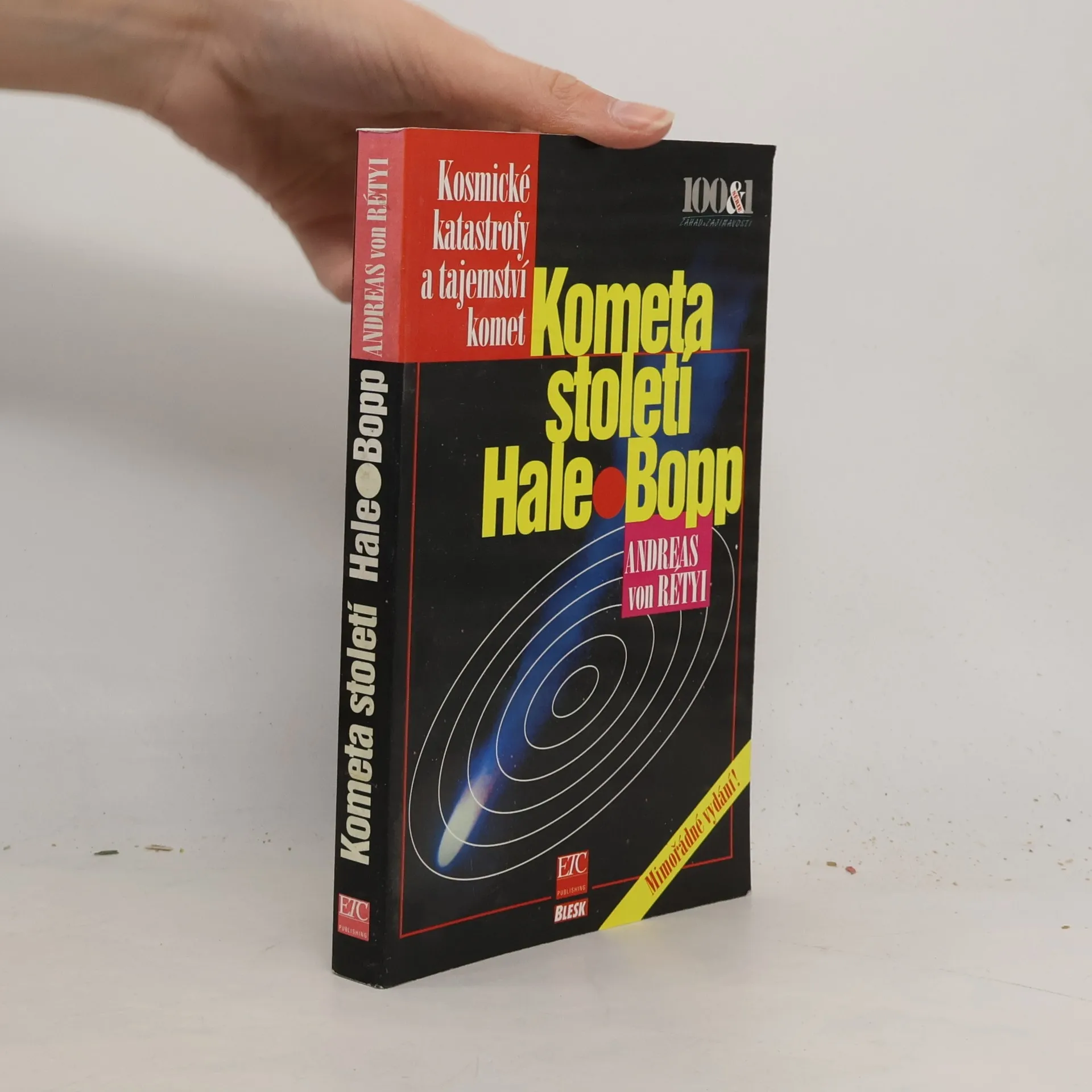Vidět na vlastní oči kometu je vždy hluboký psychický zážitek.Nebude tomu jinak i v případě komety Hale-Bopp.Uspěšný autor astronomické a vesmírné záhadologické literatůry Andreas v.Retyi na tuto fascinující událost velmi pružně zareagoval.Své vyprávění o Hale-Boppově kometě pojal poněkud šiřeji a velkoryseji,než suchý popis poznatků o kometě.Zasadil jí (mimochodem je několikrát jasnější než Halleova kometa) do vesmírné říše v niž to překypuje jinými souputníky.Publikace proto obsahuje i stručné dějiny ostatních komet.Dalším rozšiřujícím aspektem knížky je pojednání o kometach ve světových mýtech. ... celý text