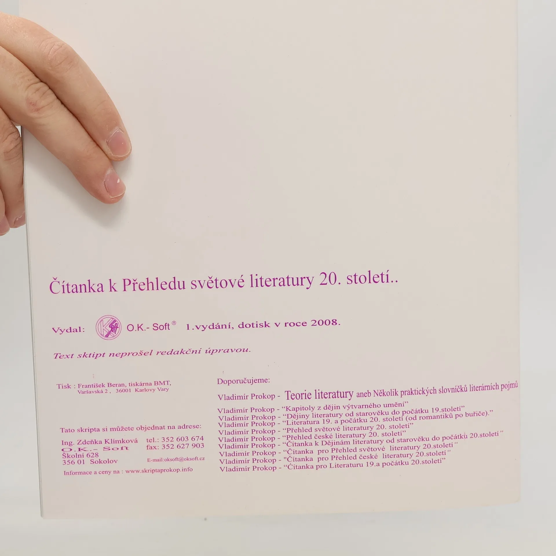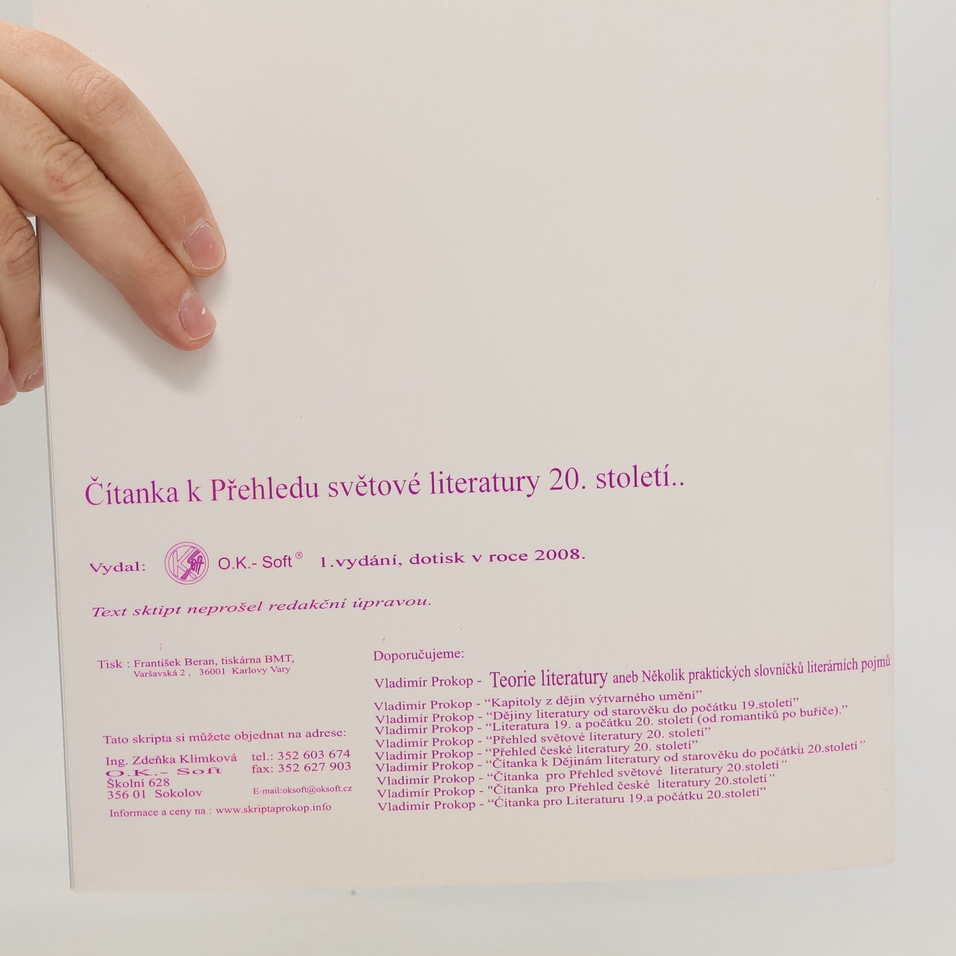 Čítanka k přehledu světové literatury 20. století, Vladimír Prokop