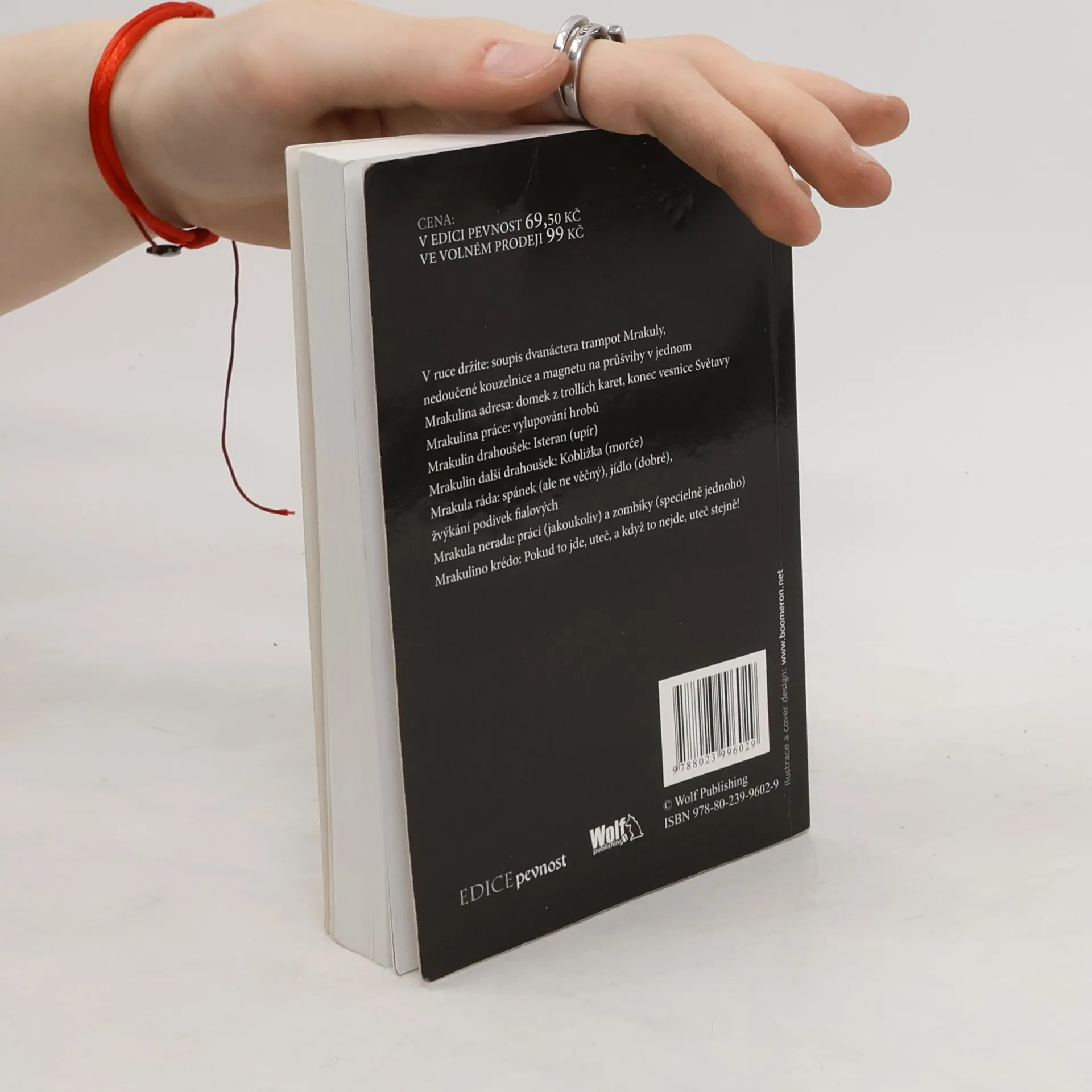 Soupis trampot Mrakuly, nedoučené kouzelnice a magnetu na průšvihy v jednom. Mrakulina adresa: Domek z trollích karet, konec vesnice Světavy. Mrakuina práce: Vylupování hrobů. Mrakulin drahoušek: Isteran (upír). Mrakulin další drahoušek: Kobližka (morče). Mrakula ráda: Spánek (ale ne věčný), jídlo (dobré), žvýkání podivek fialových. Mrakula nerada: Práci (jakoukoliv) a zombíky (speciálně jednoho). Mrakulino krédo: Pokud to jde, uteč, a když to nejde, uteč stejně!