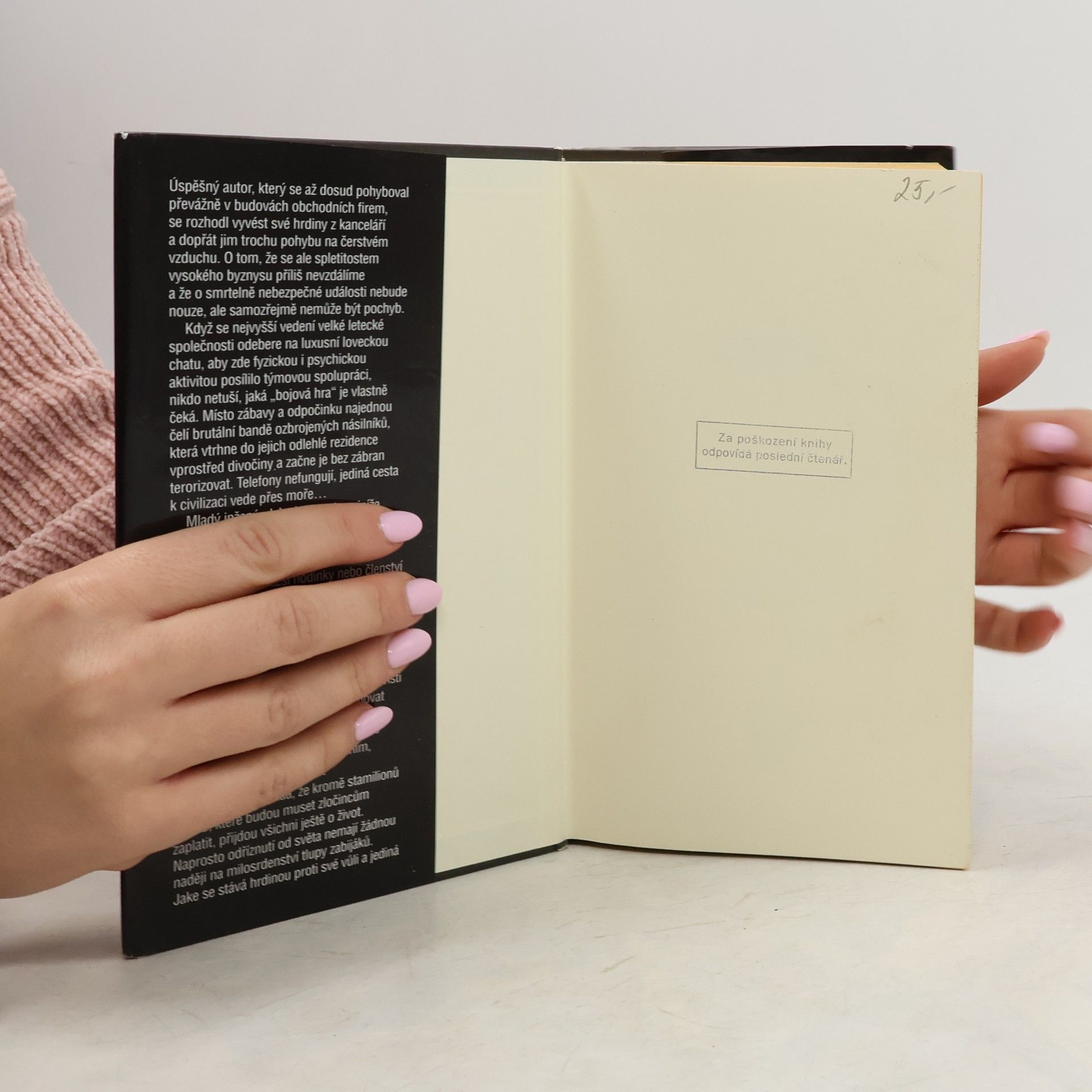 Nejvyšší management letecké firmy rukojmím za půl miliardy dolarů… Od autora "obchodního thrilleru" Vražedný instinkt… Když se nejvyšší vedení letecké společnosti odebere na luxusní loveckou chatu, aby zde fyzickou i psychickou aktivitou posílilo týmovou spolupráci, nikdo netuší, jaká "bojová hra" je vlastně čeká. Místo zábavy a odpočinku najednou čelí brutální bandě ozbrojených násilníků, která vtrhne do jejich odlehlé rezidence vprostřed divočiny a začne je bez zábran terorizovat. Telefony nefungují, jediná cesta k civilizaci vede přes moře... Mladý inženýr Jake Landry je nejníže postaveným členem "smečky", a mnozí jím proto pohrdají. Ovšem jen do chvíle, kdy se ukáže, že jisté zkušenosti jsou cennější než nejdražší hodinky nebo členství ve snobských klubech. Jde ale o obyčejný únos spojený s vydíráním, nebo o něco daleko horšího? Joseph Finder je pokračovatelem tzv. profesního románu, který na světlo světa uvedl slavný Arthur Hailey.