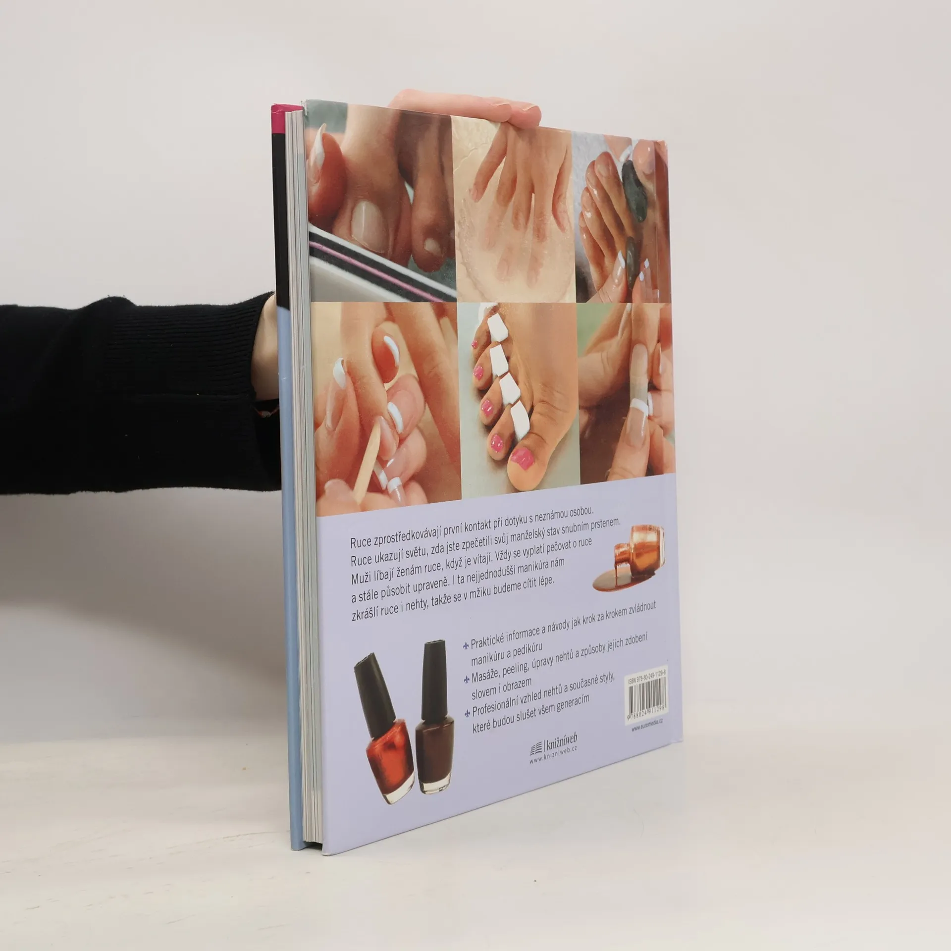 Ruce zprostředkovávají první kontakt při dotyku s neznámou osobou. Vždy se vyplatí pečovat o ruce a stále působit upraveně. I ta nejjednodušší manikúra nám zkrášlí ruce i nehty, takže se v mžiku budeme cítit lépe. Praktické informace a návody jak krok za krokem zvládnout manikúru a pedikúru doplňuje masáž, peeling a způsoby zdobení nehtů slovem i obrazem.
