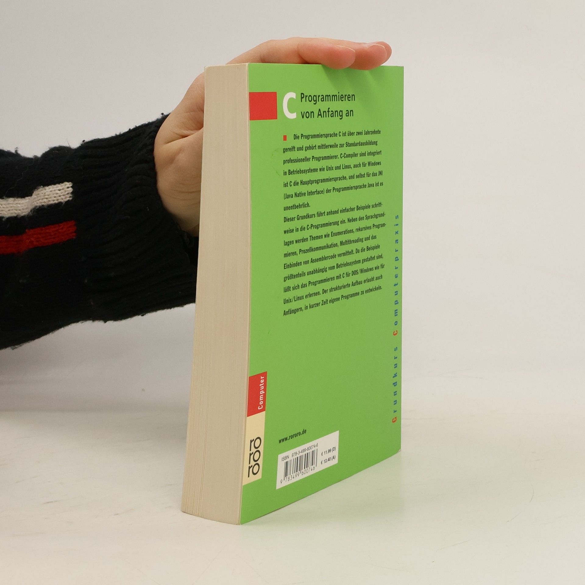 Die Programmiersprache C ist über zwei Jahrzehnte gereift und gehört mittlerweile zur Standardausbildung professioneller Programmierer. C-Compiler sind integriert in Betriebsssysteme wie Unix und Linux, auch für Windows ist C die Hauptprogrammiersprache, und selbst für das JNI (Java Native Interface) der Programmiersprache Java ist es unentbehrlich.Dieser Grundkurs führt anhand einfacher Beispiele schrittweise in die C-Programmierung ein. Neben den Sprachgrundlagen werden Themen wie Enumerations, rekursives Programmieren, Prozeßkommunikation, Multithreading und das Einbinden von Assemblercode vermittelt. Da die Beispiele größtenteils unabhängig vom Betriebssystem gestaltet sind, läßt sich das Programmieren mit C für DOS/Windows wie für Unix/Linux erlernen. Der strukturierte Aufbau erlaubt auch Anfängern, in kurzer Zeit eigene Programme zu entwickeln.