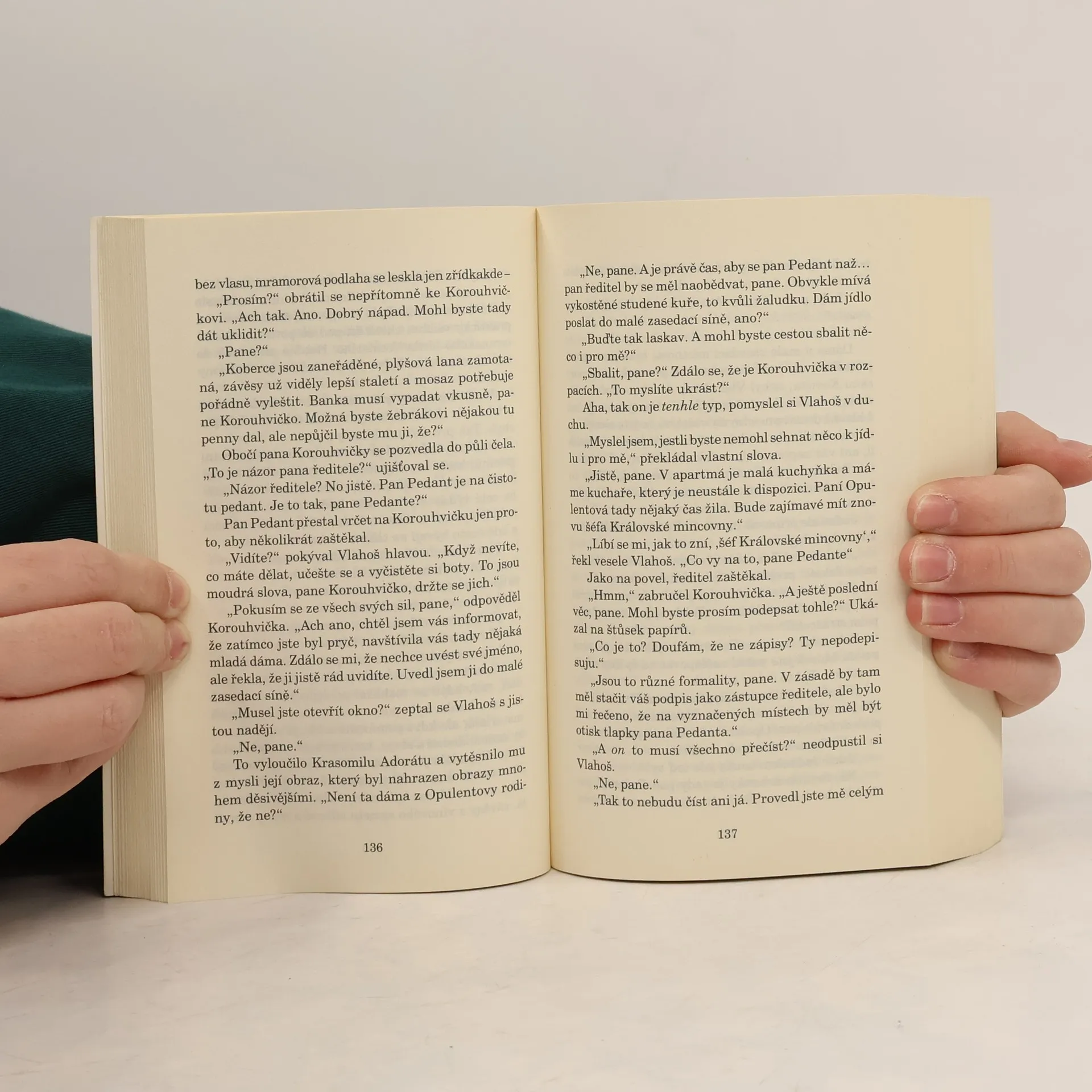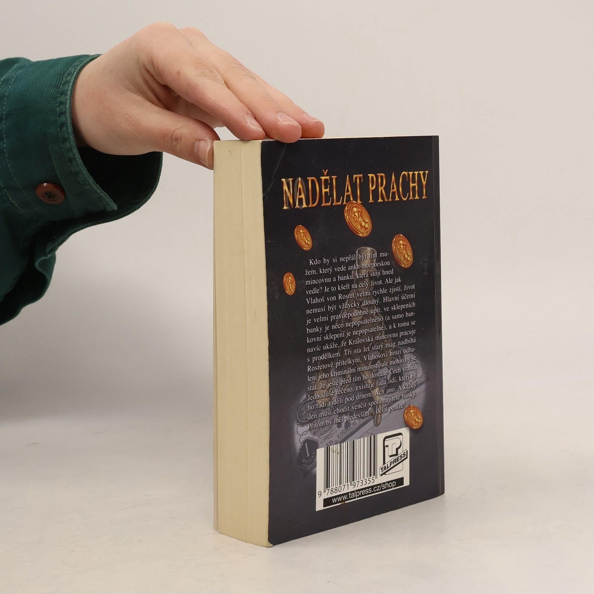 Kdo by si nepřál být tím mužem, který vede ankh-morporskou mincovnu a banku, která stojí hned vedle? Je to kšeft na celý život. Ale jak Vlahoš von Rosret velmi rychle zjistí, život nemusí být vždycky dlouhý. Hlavní účetní je velmi pravděpodobně upír, ve sklepeních banky je něco nepopsatelného (a samo bankovní sklepení je nepopsatelné), a k tomu navíc se ukáže, že Královská mincovna pracuje s prodělkem. Tři sta let starý mág nadbíhá Rosretově přítelkyni, Vlahošovi hrozí odhalení jeho kriminální minulosti, ale mohlo by se stát, že ještě před tím ho dostane Cech vrahů. Jednoduše řečeno, existuje řada lidí, kteří by ho rádi viděli pod drnem. Ach ano. A každý den musí chodit venčit spolumajitele banky. Přitom by měl především... dělat peníze! Úžasná Zeměplocha, kniha 32., přeložil Jan Kantůrek.