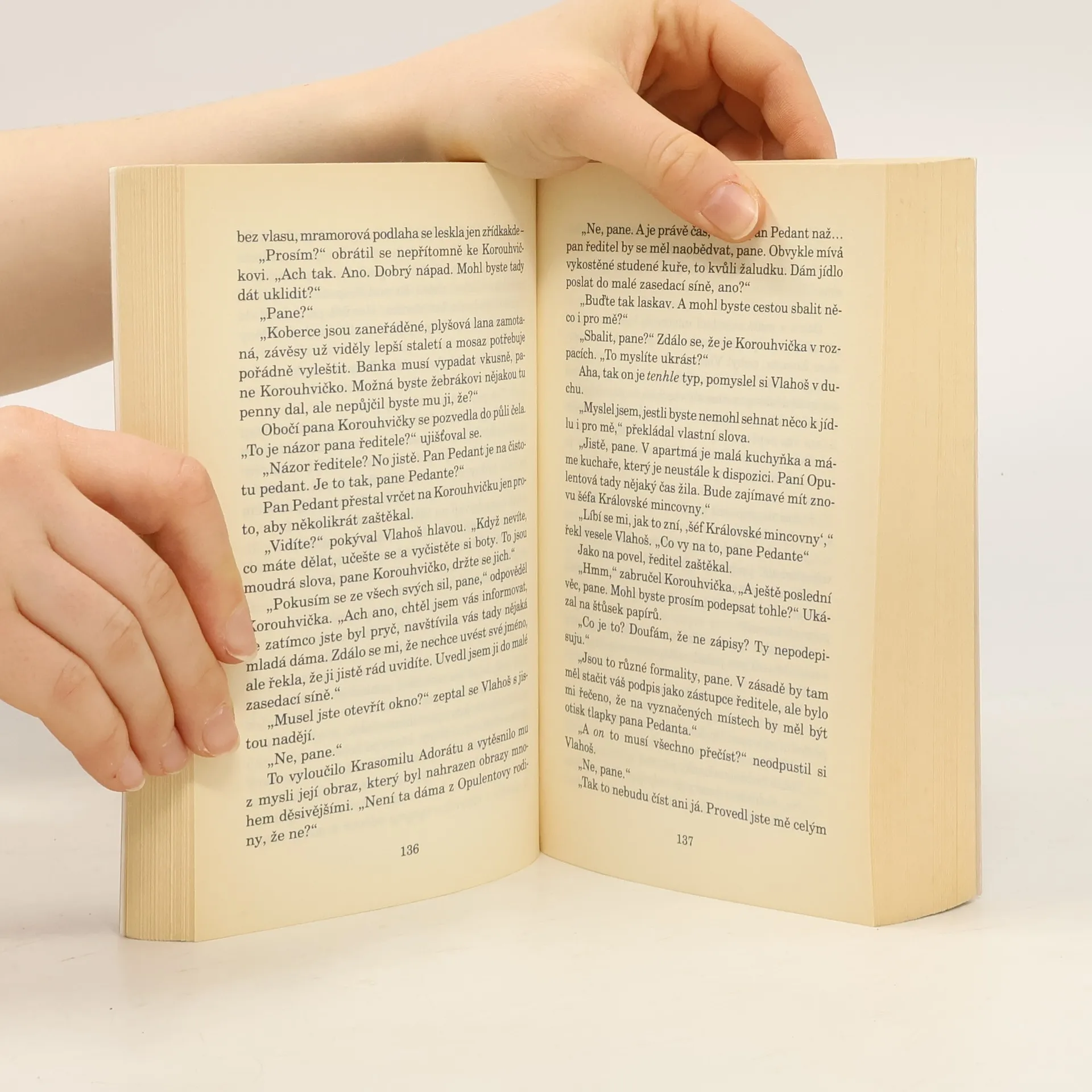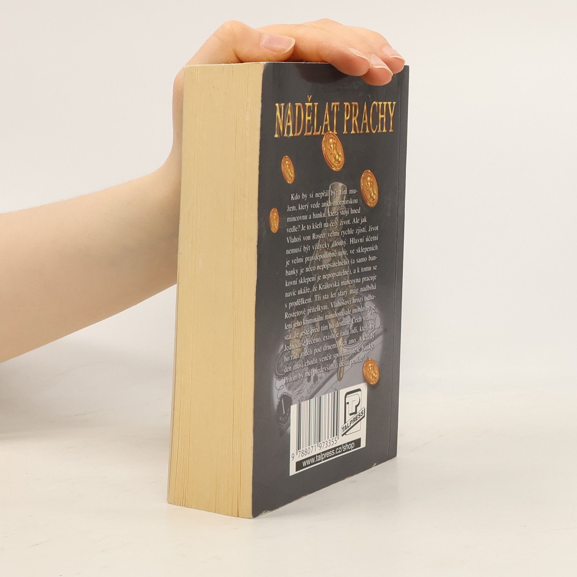 Kdo by si nepřál být tím mužem, který vede ankh-morporskou mincovnu a banku, která stojí hned vedle? Je to kšeft na celý život. Ale jak Vlahoš von Rosret velmi rychle zjistí, život nemusí být vždycky dlouhý. Hlavní účetní je velmi pravděpodobně upír, ve sklepeních banky je něco nepopsatelného (a samo bankovní sklepení je nepopsatelné), a k tomu navíc se ukáže, že Královská mincovna pracuje s prodělkem. Tři sta let starý mág nadbíhá Rosretově přítelkyni, Vlahošovi hrozí odhalení jeho kriminální minulosti, ale mohlo by se stát, že ještě před tím ho dostane Cech vrahů. Jednoduše řečeno, existuje řada lidí, kteří by ho rádi viděli pod drnem. Ach ano. A každý den musí chodit venčit spolumajitele banky. Přitom by měl především... dělat peníze! Úžasná Zeměplocha, kniha 32., přeložil Jan Kantůrek.