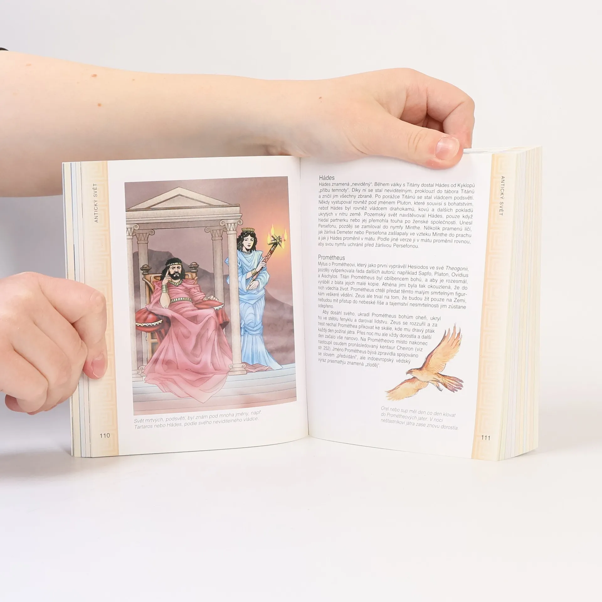 Průvodce světem mýtů, hrdinů, polobohů, bohů a bohyní. Členěno zeměpisně i tématicky. Heslovité uspořádání. Bohatě ilustrováno.