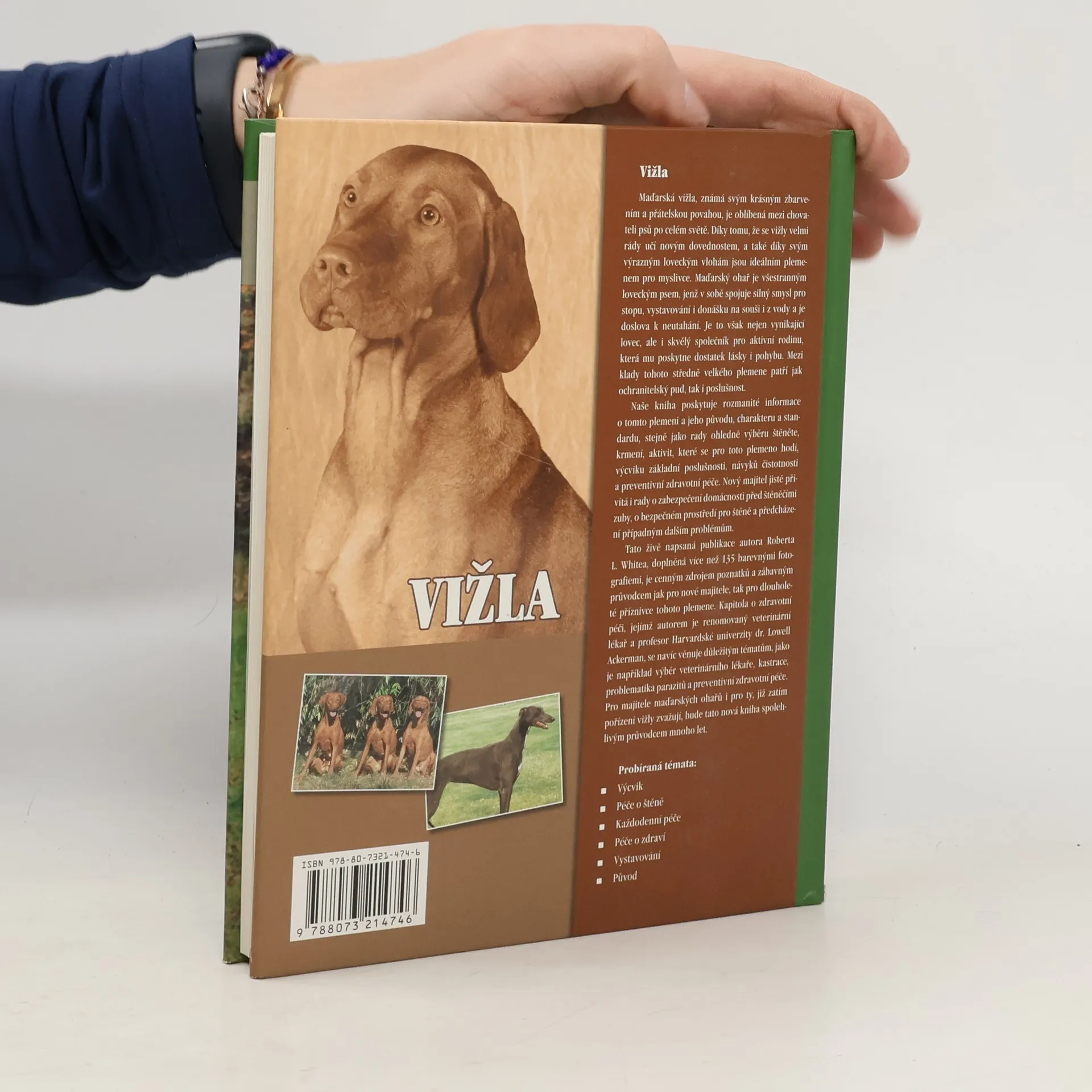 Vižla je velmi aktivní, živý a elegantní pes, charakteristický přátelskou, věrnou a milou povahou a výraznými loveckými vlohami. Je všestranným loveckým psem, jenž v sobě spojuje silný smysl pro stopu, vystavování i donášku na souši i z vody. Je to však nejen neúnavný lovec, ale i ideální společník pro aktivní rodinu. Naše kniha poskytuje potřebné faktické informace o tomto plemeni a jeho původu, charakteru a standardu, stejně jako rady ohledně výběru štěněte, krmení, výcviku poslušnosti a návykům čistotnosti a preventivní zdravotní péči. Nový majitel jistě přivítá rady o zabezpečení domácnosti před štěněcími zuby, o bezpečném prostředí pro štěně, o prevenci úzkosti ze samoty a dalších možných problémech. Tato odborná, živě napsaná publikace nabízí mimo jiné přes 135 barevných fotografií, které nejsou jen informativní, ale i působivé. Cenné rady a zajímavé informace jsou v textu zvýrazněné, aby se čtenář snadno orientoval v tom, co potřebuje vědět o životě s maďarským ohařem. Ať již jde o základní výcvik, alergie nebo blechy, tato publikace čtenáře provede životem psa od štěněte až po seniorské období, včetně seznámení s prostředím výstav a zkoušek.