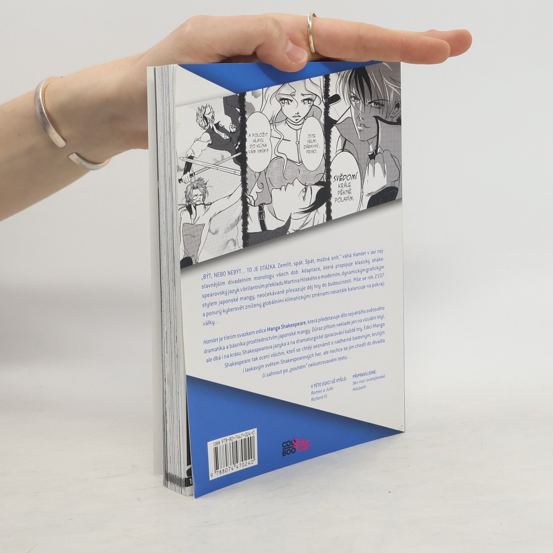 Třetí svazek edice Manga Shakespeare představující dílo největšího světového dramatika a básníka prostřednictvím japonské mangy. Adaptace, která propojuje klasický shakespearovský jazyk s moderním, dynamickým grafickým stylem japonské mangy, neočekávaně přesazuje děj hry do budoucnosti. Píše se rok 2107 a ponurý kybersvět neustále balancuje na pokraji války…