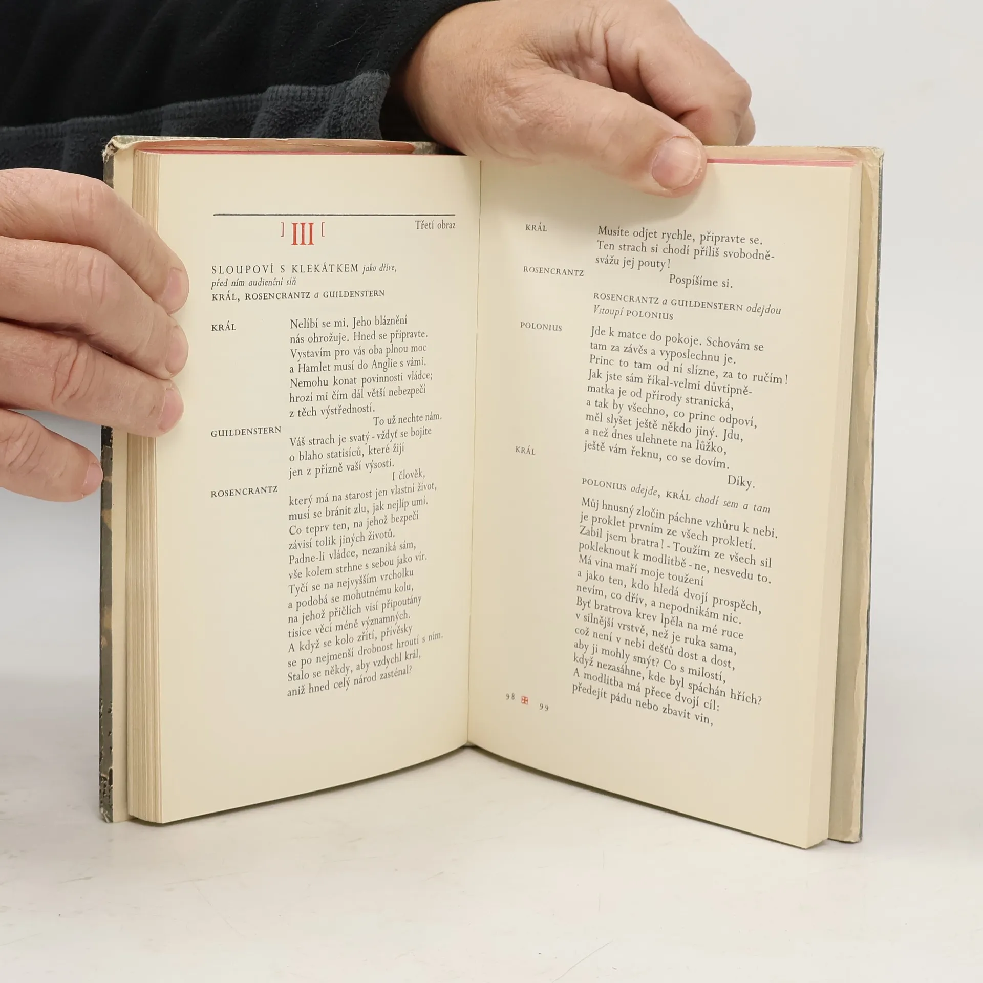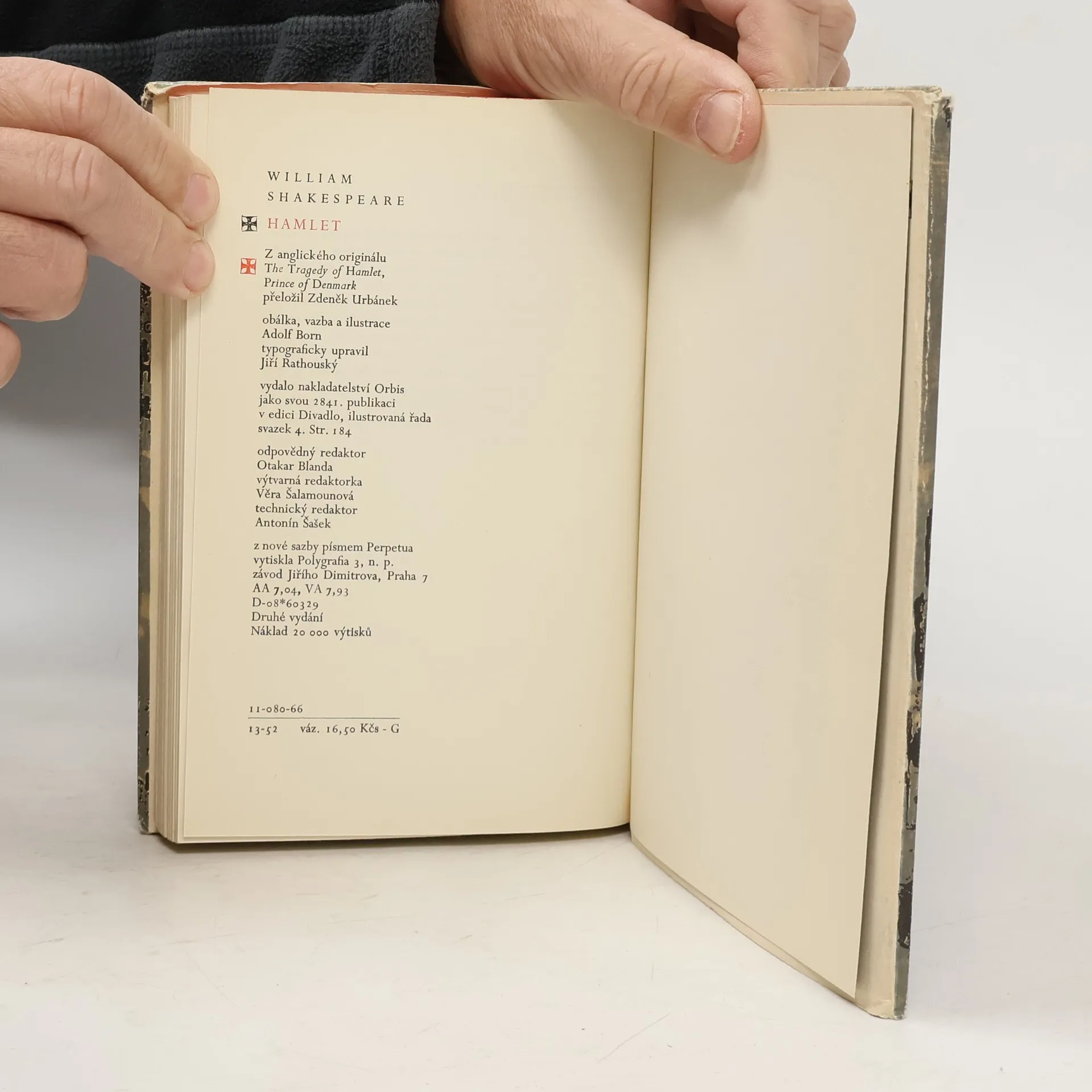 Slavná divadelní hra - tragédie Ediční poznámka Zdeňka Urbánka v knize k tomuto vydání z roku 1966: "Při práci na tomto překladu jsem zcela spolehl na text, poznámkový aparát a glosář cambridského vydání Hamleta (The Works os Shakespeare, The Tragedy of Hamlet, Prince of Denmark, CambridgeUniversity Press, 2 vydání, 1936), které redigoval profesor John Dover Wilson. Řídil jsem se jím důsledně i na několika místech, jež zůstávají z hlediska textové kritiky nebo výkladu podnes sporná a kde jsem měl sám pochybnosti o správnosti výkladu. Za velmi účinnou pomoc při úpravě konečného znění českého textu i při rozboru četných obtížných míst chci poděkovat Janu Grossmanovi. Neméně jsem zavázán za pročtení překladu i mnoha cenná upozornění Emanuelu Fryntovi. Pokud byl překladatelský záměr úspěšně splněn, je to i jejich zásluha, kde zůstaly nedostatky, zavinil je překladatel sám".