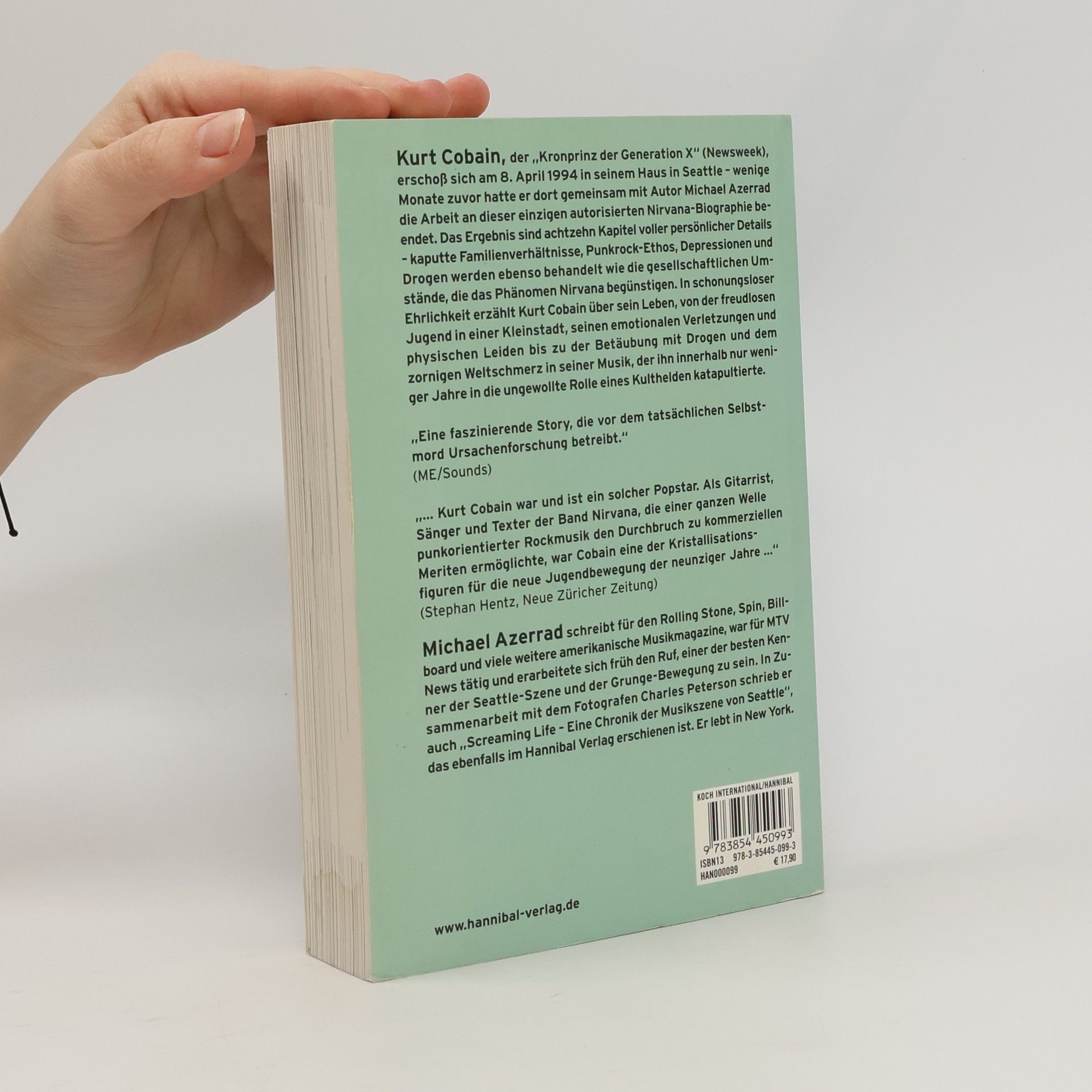 Kurt Cobain, der „Kronprinz der Generation X“ (Newsweek), erschoss sich am 08. April 1994 in seinem Haus in Seattle – wenige Monate zuvor hatte er dort gemeinsam mit Michael Azerrad die Arbeit an dieser einzigen autorisierten Nirvana-Biografie beendet. In schonungsloser Offenheit erzählt Cobain in den 18 Kapiteln aus seinem Leben, von seiner freudlosen Jugend in einer Kleinstadt, seinen emotionalen Verletzungen und physischen Leiden bis hin zu der Betäubung mit Drogen und dem zornigen Weltschmerz in seiner Musik, der ihn innerhalb von wenigen Jahren in die ungewollte Rolle eines Kulthelden katapultierte.