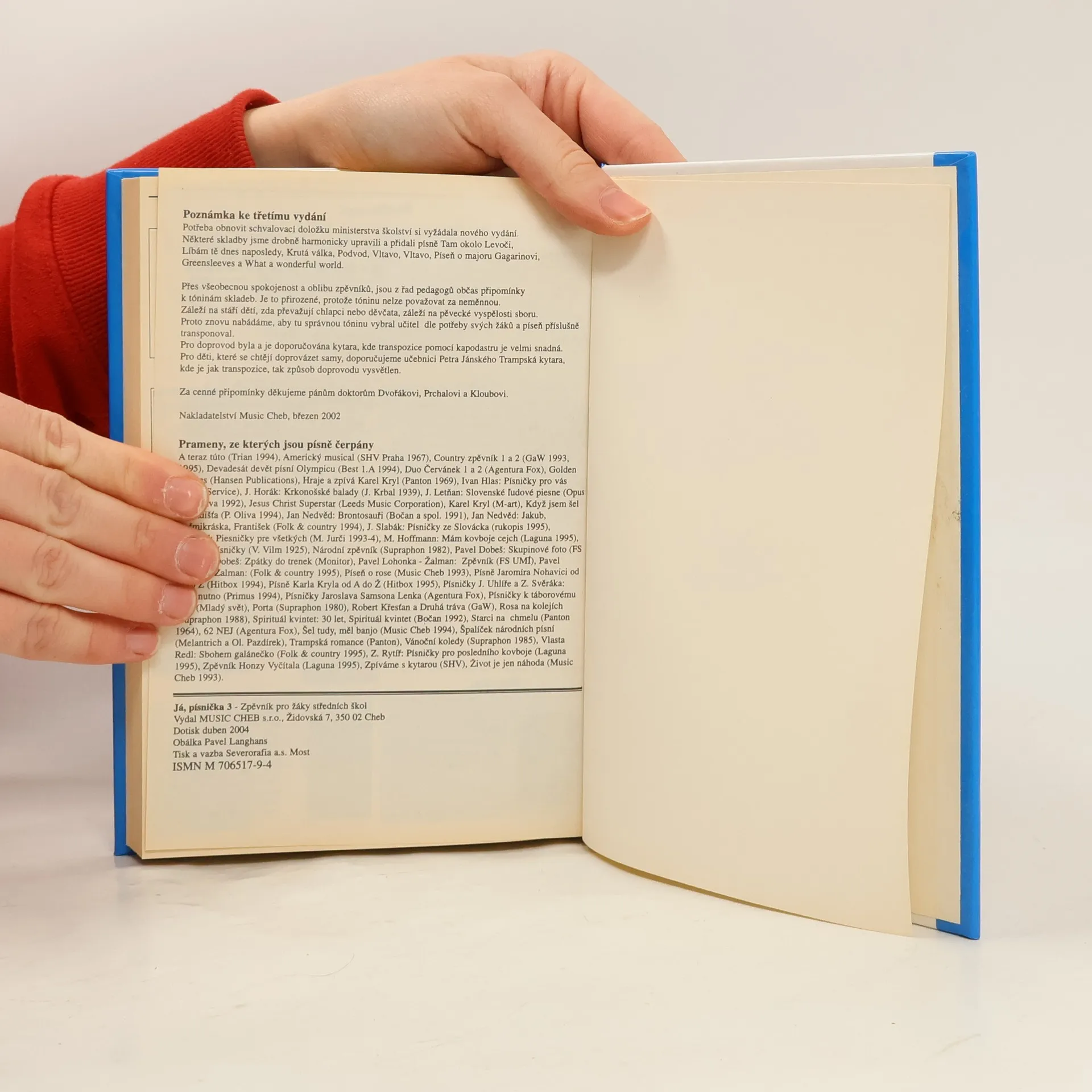 Zpěvník pro žáky středních škol poskytuje bohatý průřez českou i světovou hudbou. Obsahuje koledy, lidové písně, trampské (folk&country) písně, výběr z popu, rocku a jazzu, operetní, muzikálové, filmové či divadelní skladby, klasické písně a na závěr hymny šesti států. Doporučený doprovod - kytara.