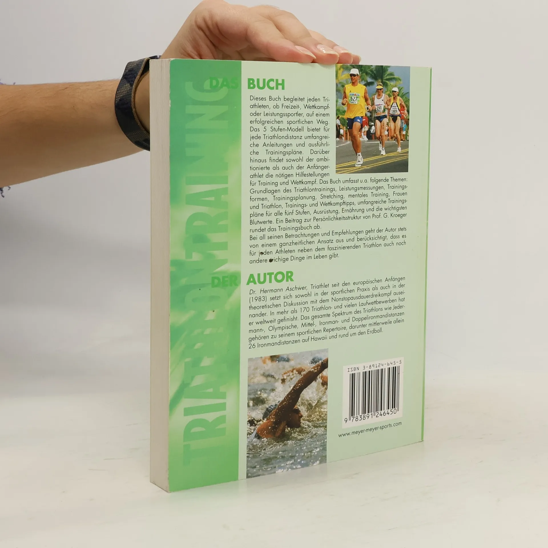 Dieser Titel begleitet jeden Triathleten, ob Einsteiger, Wettkampf- oder Leistungssportler, auf einem erfolgreichen sportlichen Weg. Beginnend mit wichtigen Überlegungen für die eigene erfolgreiche Strategie, bietet das Fünf-Stufen-Modell für jede Triathlondistanz umfangreiche Anleitungen und ausführliche Trainingspläne. Das Buch umfasst u. a. folgende Erfolgreich kann im Triathlon jeder sein, Gesundheits-Check-up und Ausdauertest, alle Trainingsformen, u. a. Pulsmessung und Leistungsdiagnostik, Ganzjahresplanung, umfangreiche Trainingspläne in allen fünf Stufen, mentales Training, Ernährung, die richtigen Blutwerte, Stretching und Verletzungsprophylaxe, nützliche Anschriften sowie Anekdoten und fesselnde Berichte aus dem Leben eines Triathleten. Ein Beitrag von Prof. G. Kroeger zur Persönlichkeitsstruktur rundet das Trainingsbuch ab.Bei all seinen Betrachtungen und Empfehlungen geht der Autor stets von einem ganzheitlichen Ansatz aus und berücksichtigt, dass es für jeden Athleten neben dem faszinierenden Triathlon auch noch andere wichtige Dinge im Leben gibt.