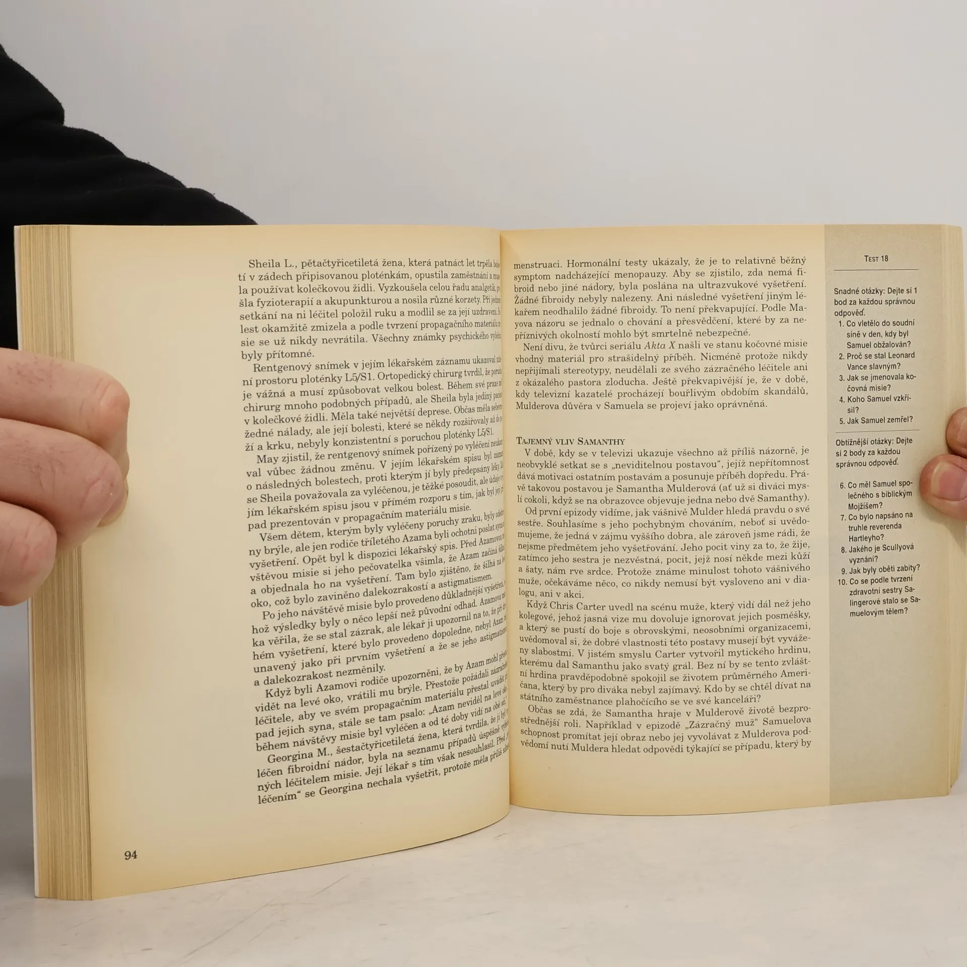 Od vlkodlaků a feromonů ke kanibalistickým obřadům, od umělé inteligence až k nemoci rychlého stárnutí a další podrobné informace o fascinujících a často bizardních námětech seriálu Akta X. Průvodce televizním seriálem Akta X spojený s testem znalosti jednotlivých příběhů.