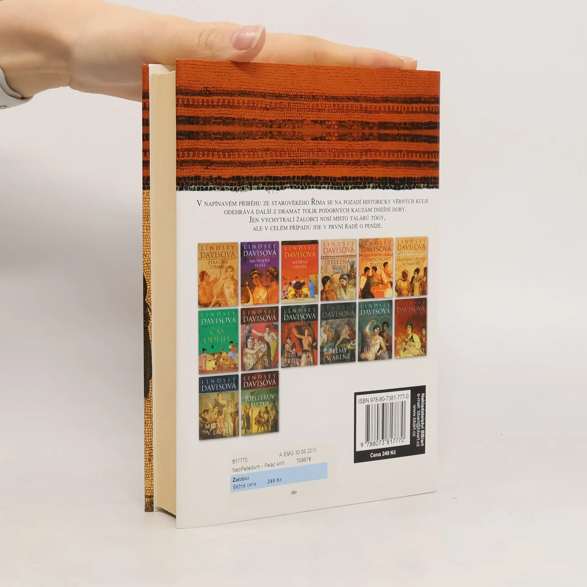 Další díl poutavé falconovské série se odehrává v Římě, kam se informátor Marcus Didius Falco po náročném vyšetřování v Británii vrací domů. Čelí nejen každodenním starostem spojeným se životem v nedostavěném domě s malými dětmi a posvátnou drůbeží, ale i pracovnímu zatížení, protože Řím na něj pozapomněl. Podřadný úkol ho svede k právnickým esům té doby, která se nechtějí zaplést do špinavé práce. Falco se ocitá v těžké situaci kolem sebevraždy váženého senátora Rubiria Metella, která by mohla být jiná, než se zdá. Jeho smrt by zbavila rodinu povinnosti platit soudní pokutu, a v případě vraždy by hamižní žalobci mohli získat tučnou odměnu. Falco, s pomocí své chytré manželky a jejích nepraktických bratrů, se snaží rozplést zapeklitý případ s detektivním taktem. Zjišťuje, že zločiny ve vysokých kruzích Říma jsou stejně bezohledné jako ty v zapadlých uličkách. Napínavý příběh se odehrává na historicky věrném pozadí a odhaluje dramatické kauzy, které jsou podobné těm dnešním, přičemž v centru všeho stojí peníze. Konec příběhu zůstává překvapivý a neprozrazený.